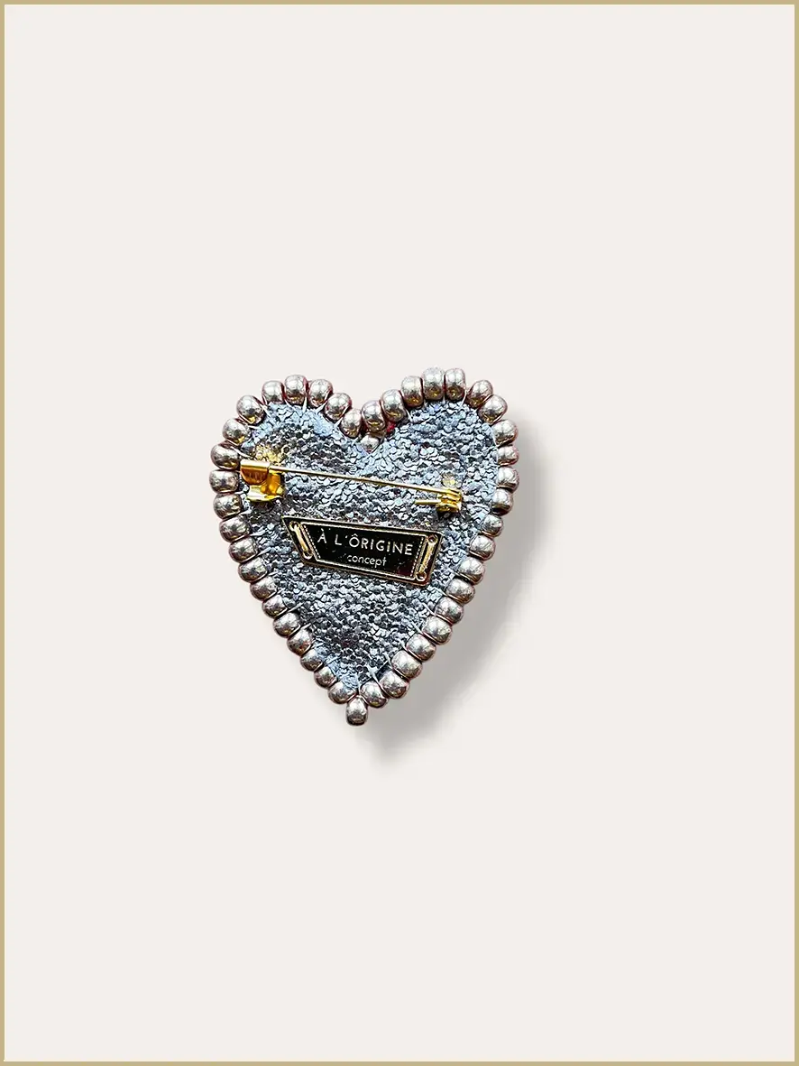 Cette broche accessoire honore l’artisanat d’art, elle possède toute l’élégance d’un bijou, célébrant un amour intense et lumineux.