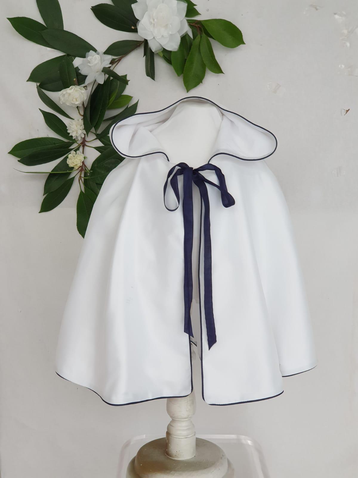 Soyez le premier à laisser votre avis sur “Cape ottoman blanc et marine cape en ottoman blanc borde Maine doublée en coton fabrication française”