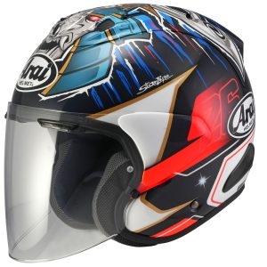 - Nouvelle visière incolore CWR-F2 avec un champ de vision plus ouvert en horizontal et en vertical que sur l’ancienne version et disposant de fixations pour le Pinlock anti-buée positionnées plus loin afin de ne pas gêner la vision du pilote.