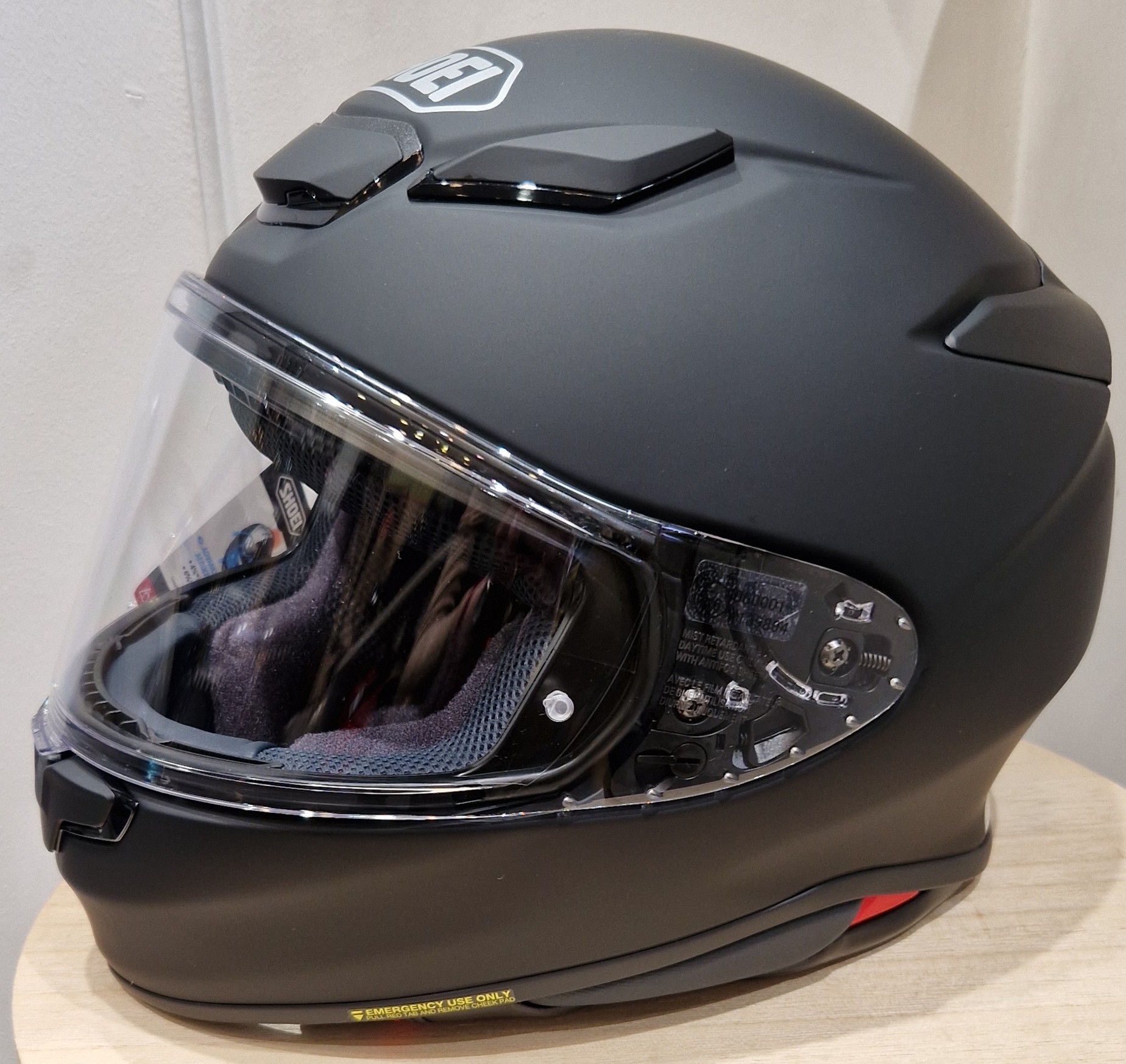 Plein de nouveautés comme une nouvelle calotte extérieure, un nouvel écran, un aérodynamisme encore plus poussé, une meilleure insonorisation, une finition toujours au top chez Shoei et surtout la nouvelle norme CE 22-06.