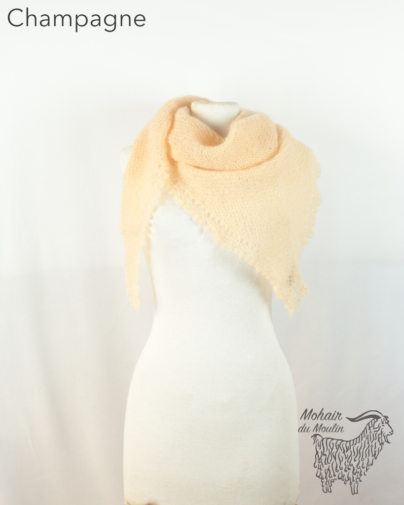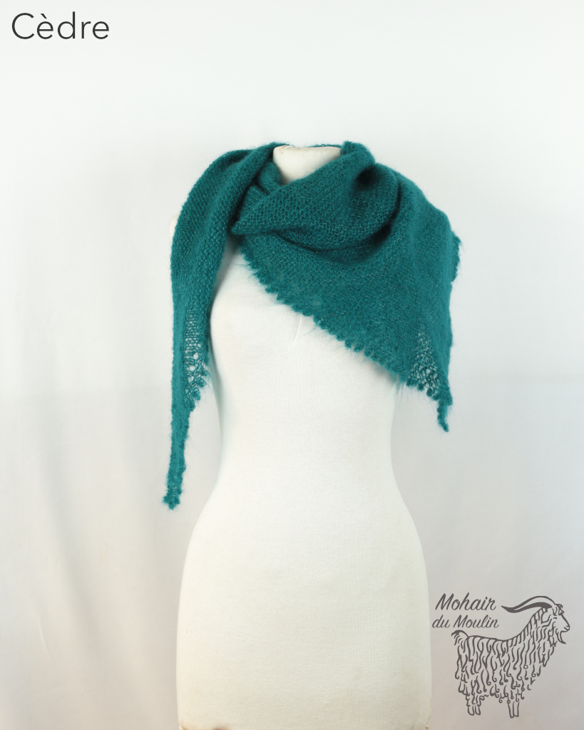 Le châle Cévennes mohair est une pointe, à porter soit en châle, soit en chèche (avec la pointe devant).