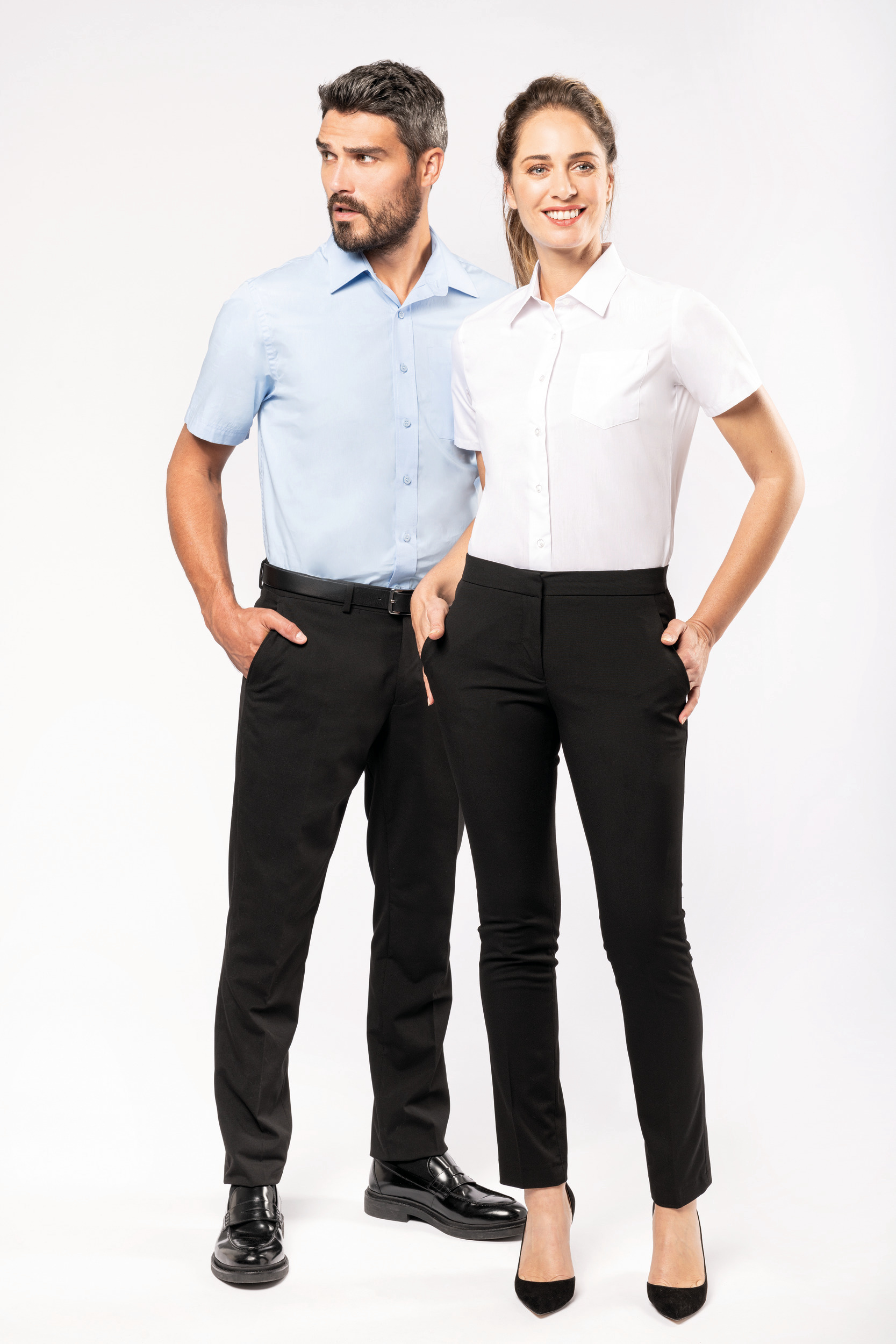 100% coton popeline. Entretien facile (traitement Easy Care). Col non boutonné. Boutons ton sur ton. Poche poitrine côté gauche en V. Ourlet bas de manche double rempli. 1 bouton de rappel. Bas arrondi.