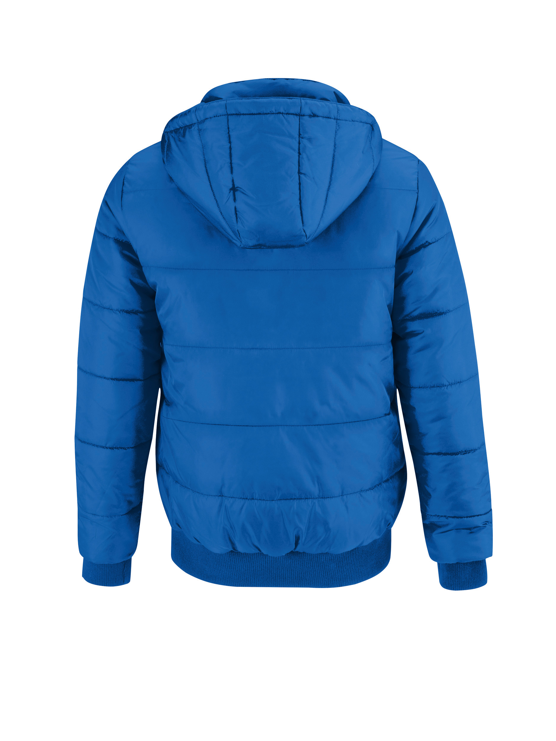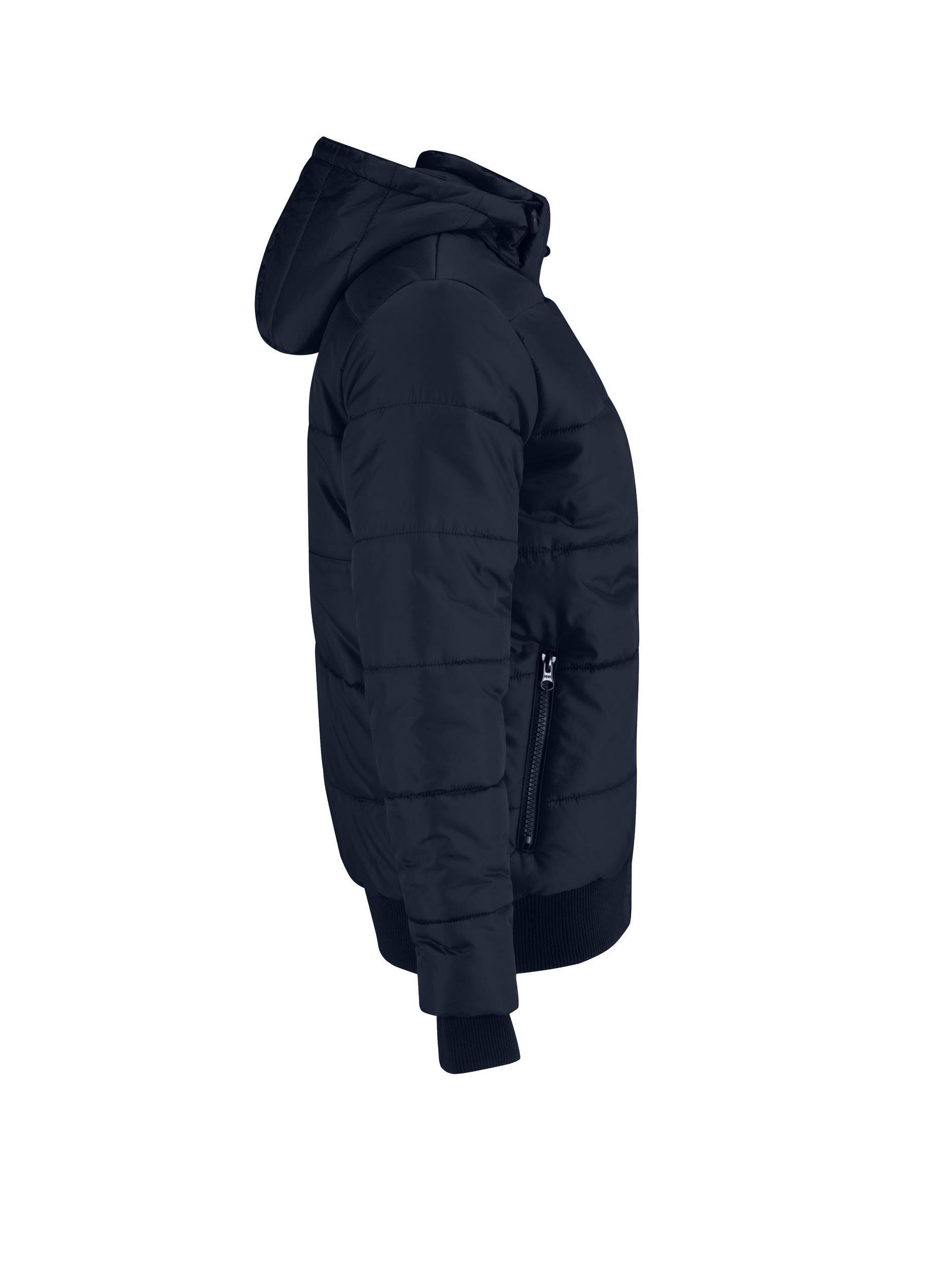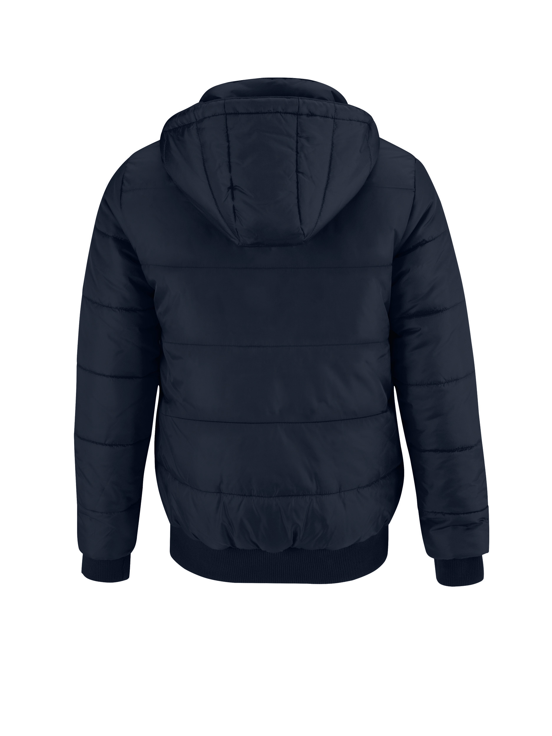 Couche extérieure : taffetas 300T 100% polyester avec enduit acrylique. Couche intérieure : taffetas rembourré 100 % polyester. Capuche rembourrée détachable et ajustable et patte intérieure anti-intempéries. 2 poches avant zippées et 1 poche portefeuille intérieure. Poignets et bord inférieur en coton/élasthanne côte 2×2. Zip SBS ton sur ton. Style « bomber » contemporain et coupe “retail” avec couleur extérieure unie et doublure intérieure contrastée. Accès facile pour décoration.