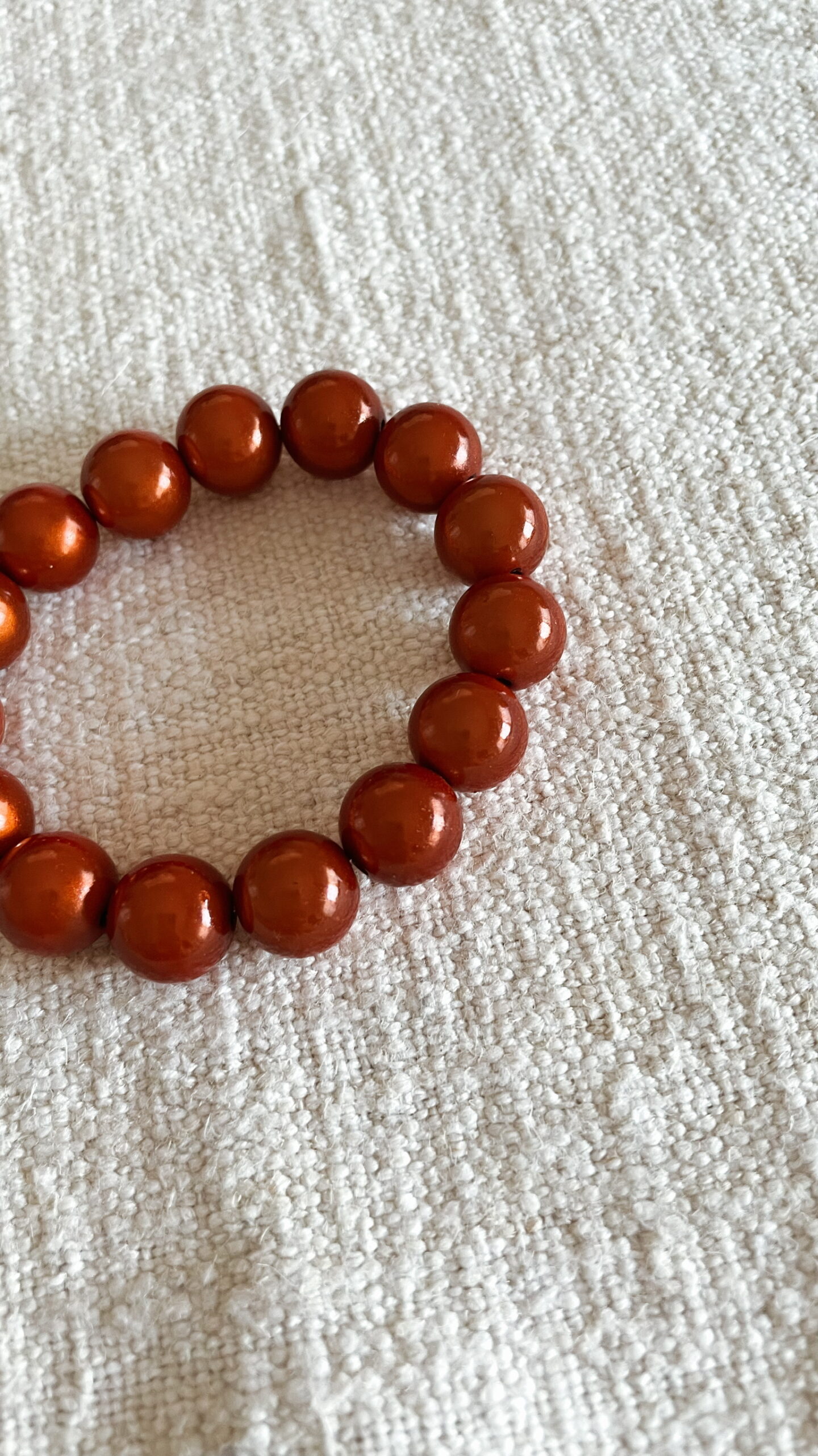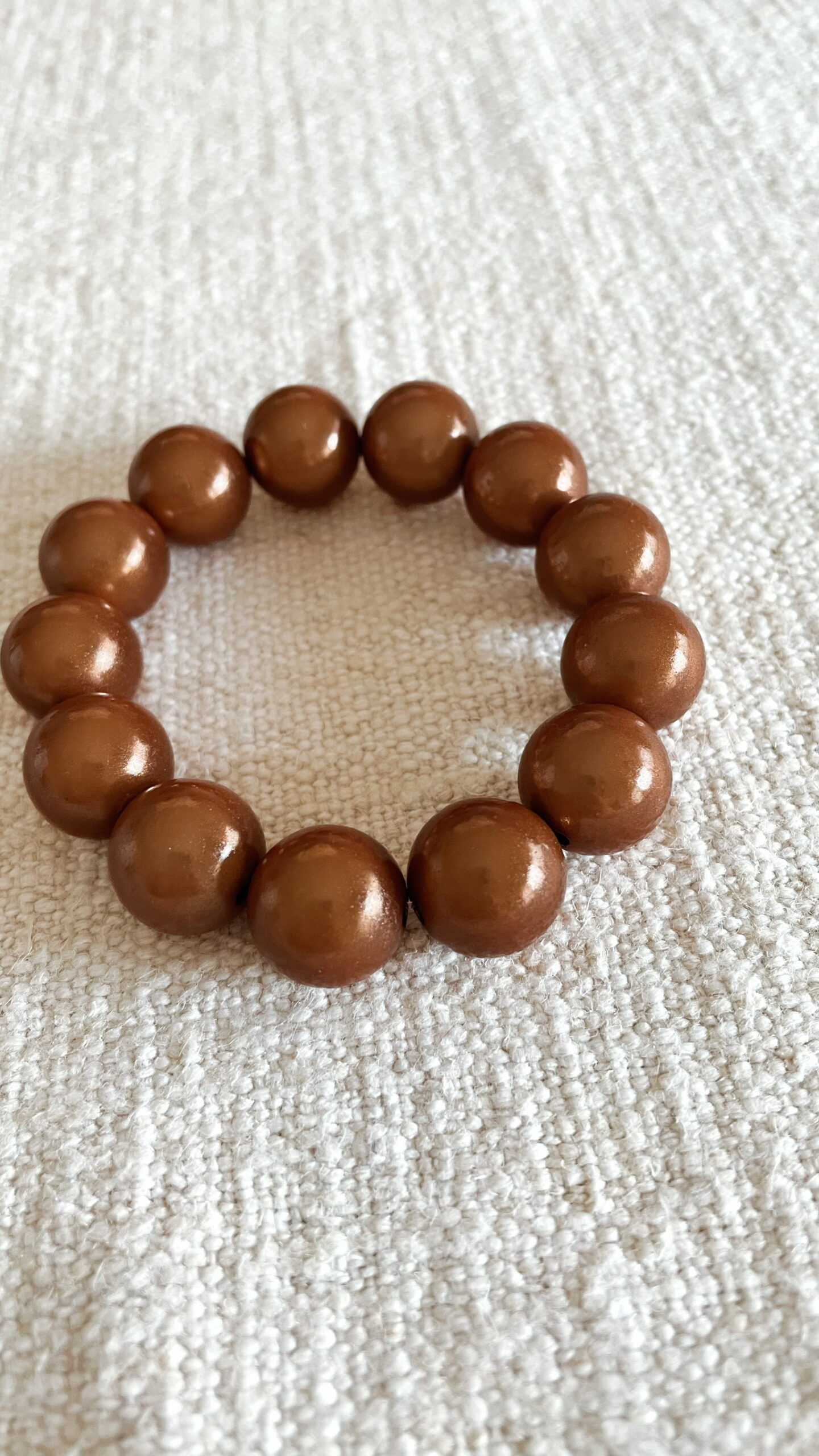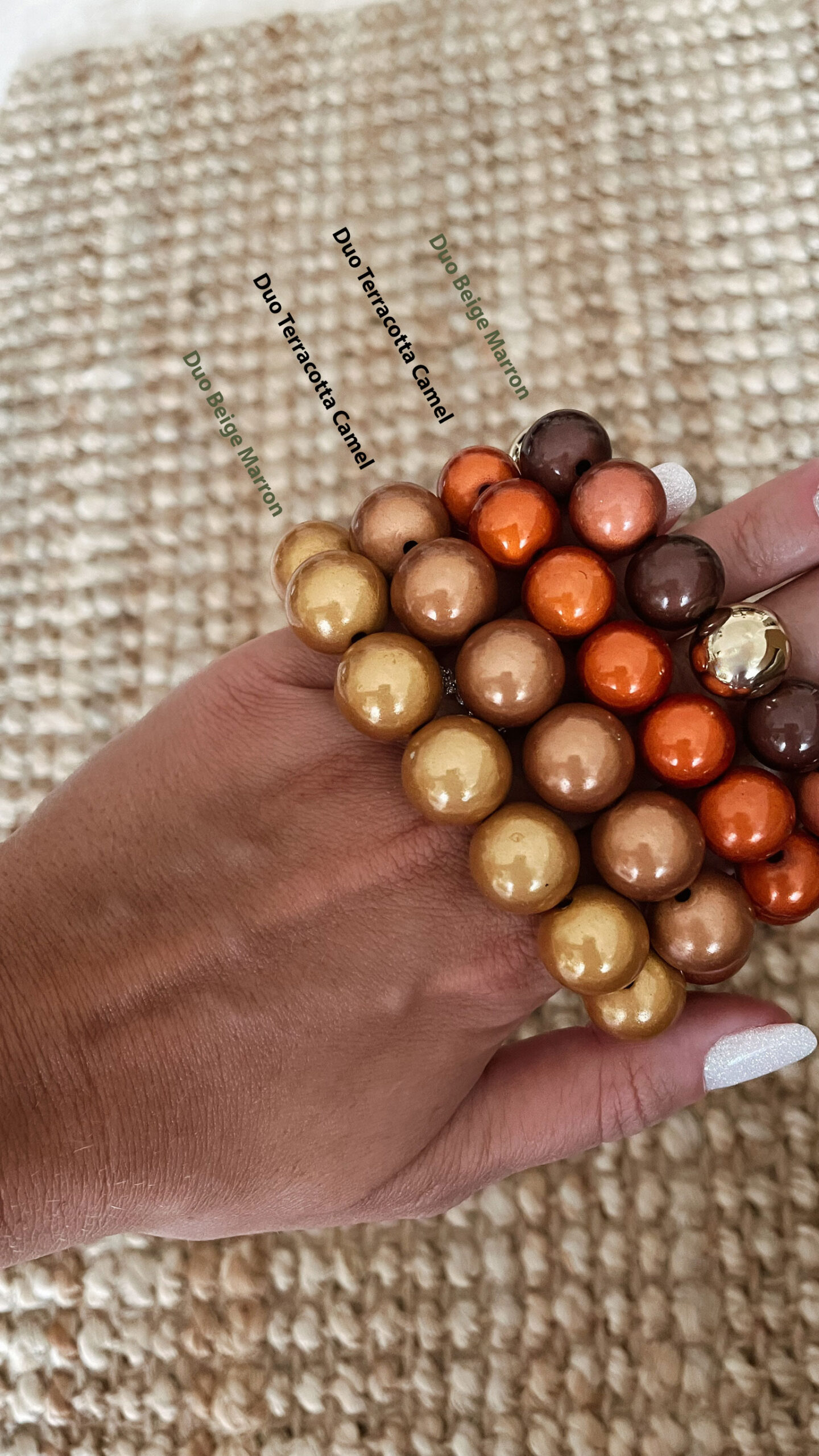 -Lot de deux bracelets en grosses perles résine de couleur terracotta et camel.