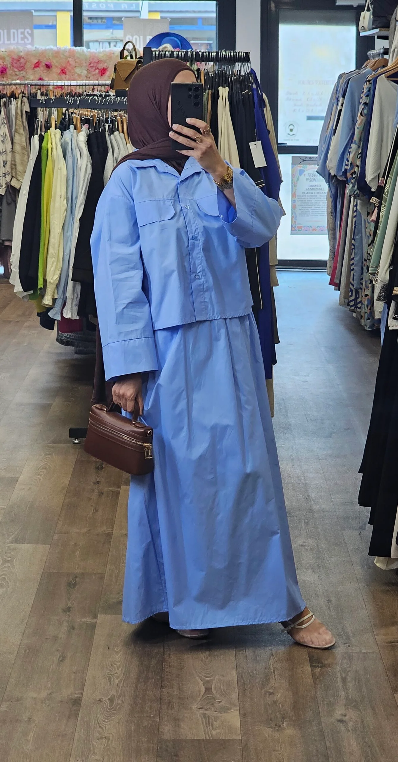 - Ce magnifique ensemble mastour et tendance est composé d’une jupe longue et d’une chemise