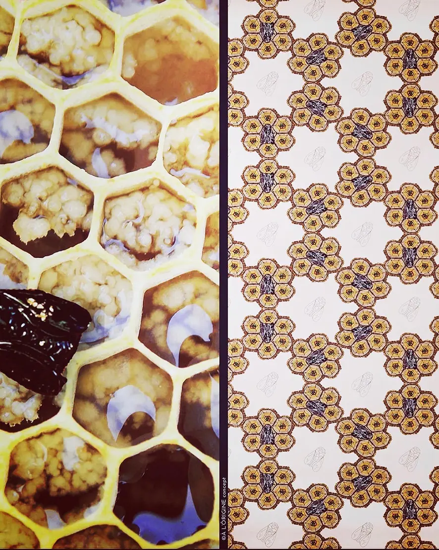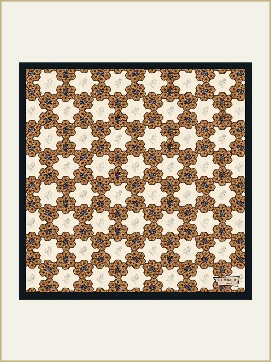 Avec le motif « Abeille à la Ruche », ses couleurs de miel, beige rosé et noir vous permettent de mettre en lumière vos tenues tout au long de l’année : aussi magnifique sur une robe noire qu’avec une chemise blanche !