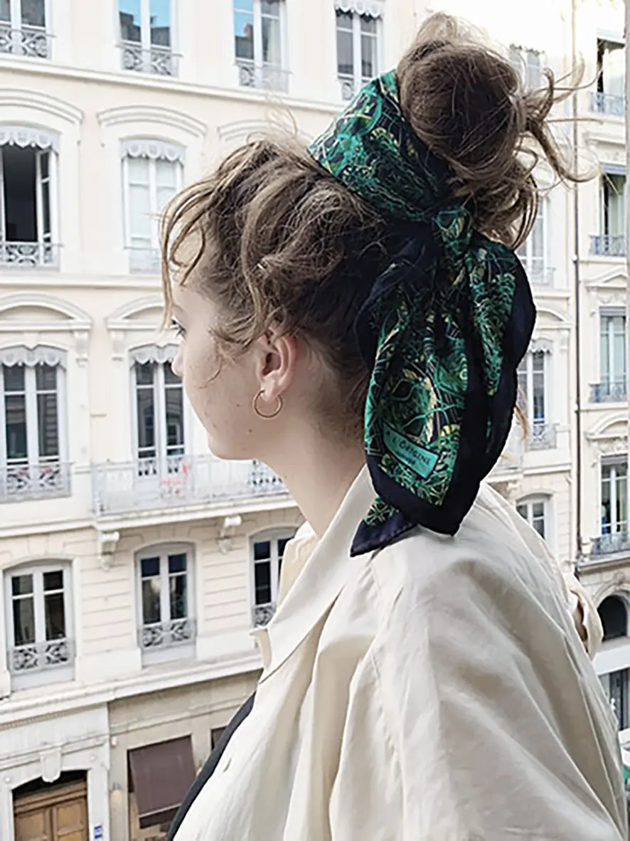 100 % en twill de soie, imprimé en Italie avec notre motif en création originale, c’est un intemporel.