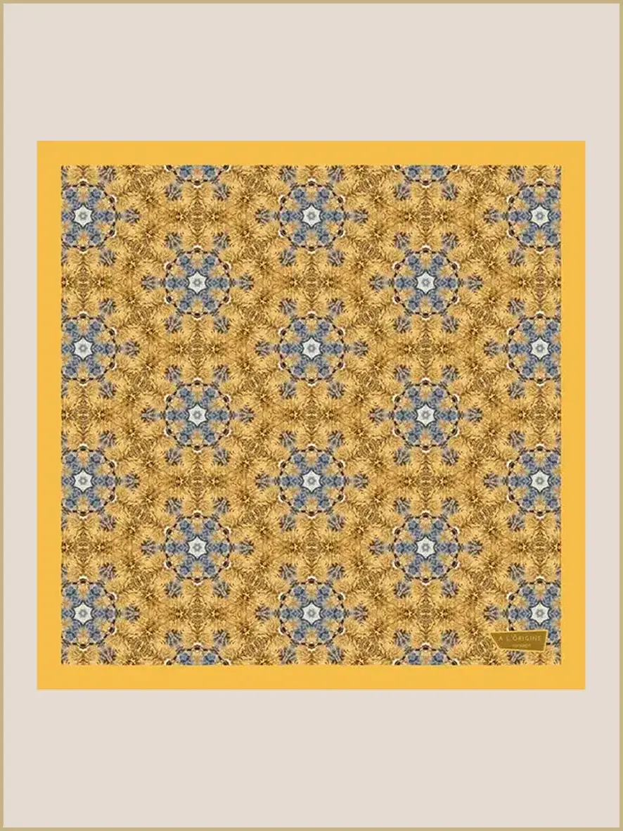 Avec le motif Oursin, ses couleurs de bleu gris, ocre et jaune soleil vous permettent de mettre en lumière vos tenues tout au long de l’année !