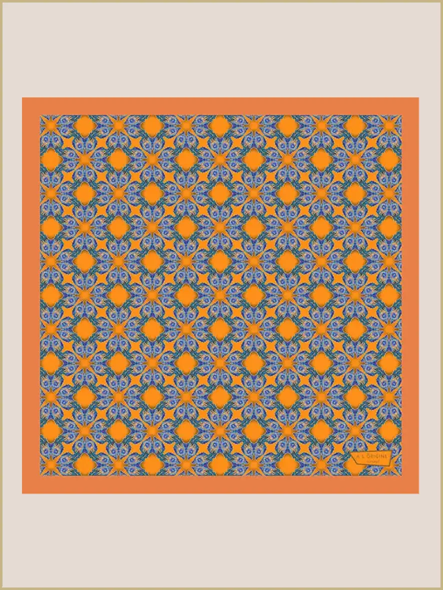Avec le motif Plume de Paon, les couleurs en bleu et orange vous donnent une touche énergique, vous serez prête à déployer vos ailes !