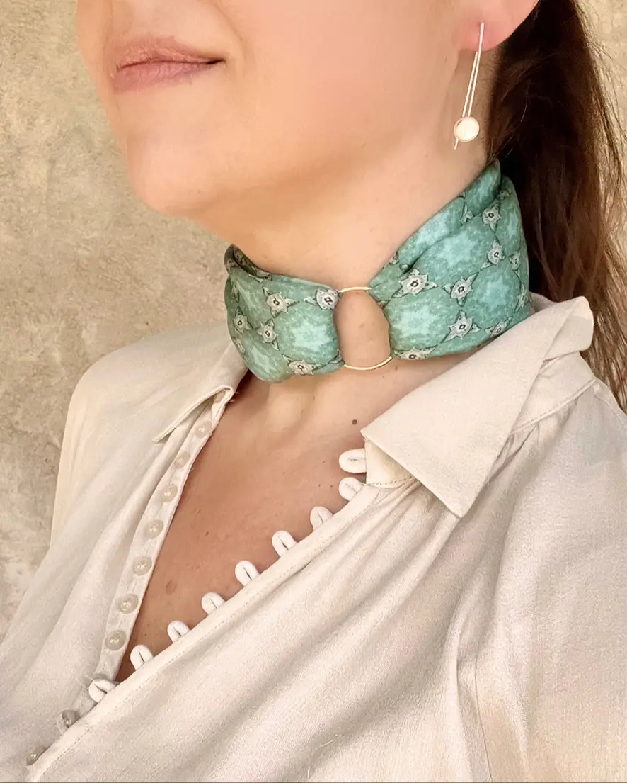 Le Bandana est le format standard dans la collection de nos foulards : il se porte aussi bien en bandeau de cheveux, qu’en ceinture ou encore de multiples façons autour du cou.
