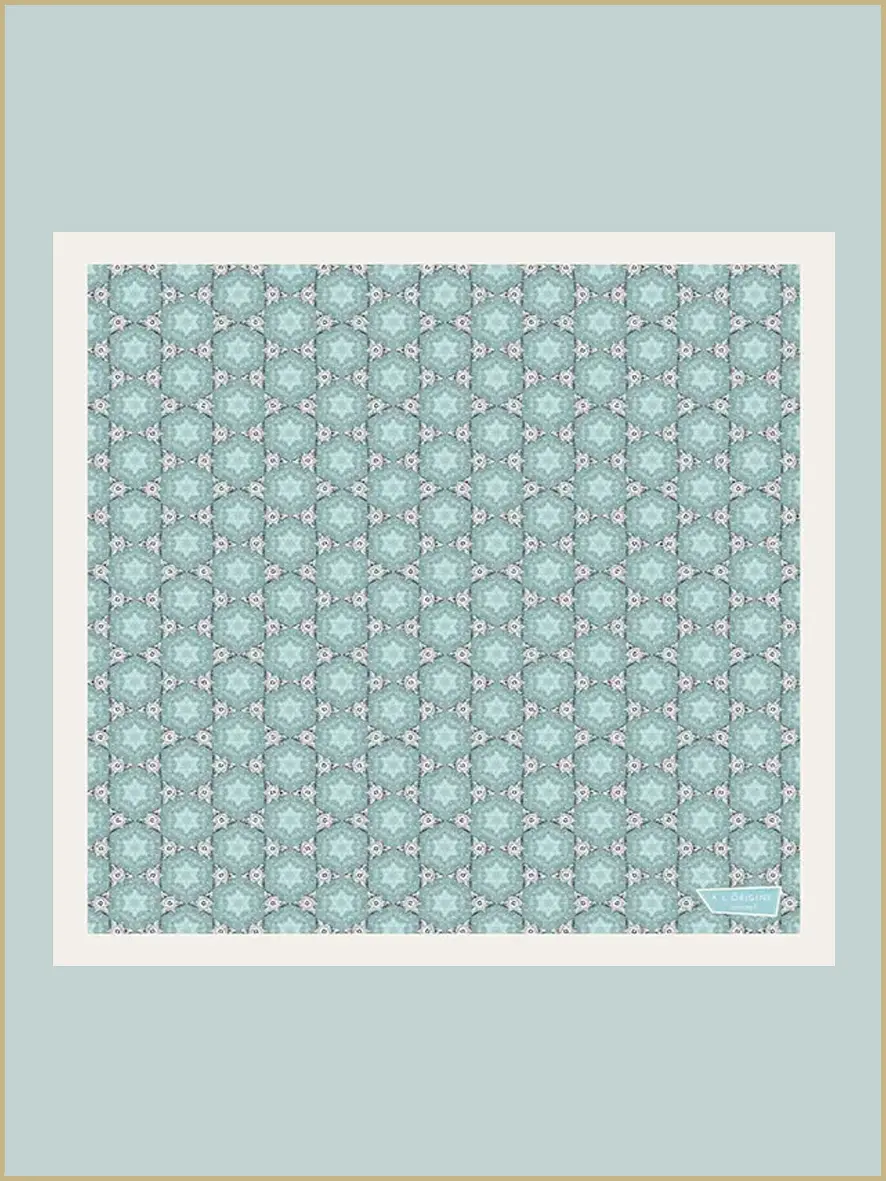 Avec le motif Roche au Soleil, ses couleurs de bleu-vert et gris perle vous permettent de mettre en lumière vos tenues tout au long de l’année.