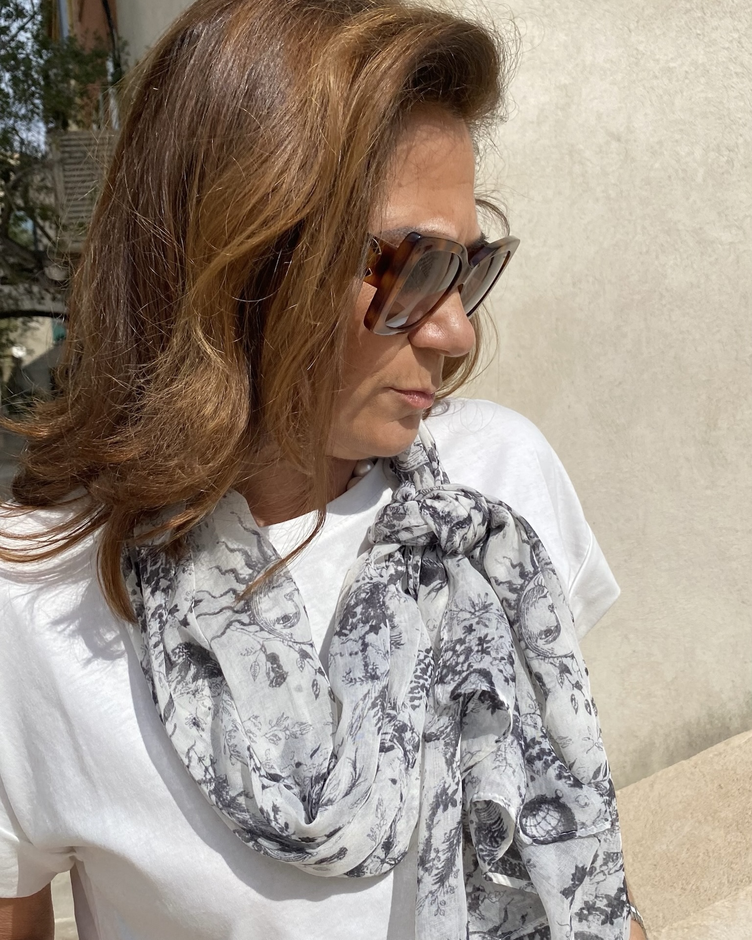 Foulard à motif toile de jouy noir.
