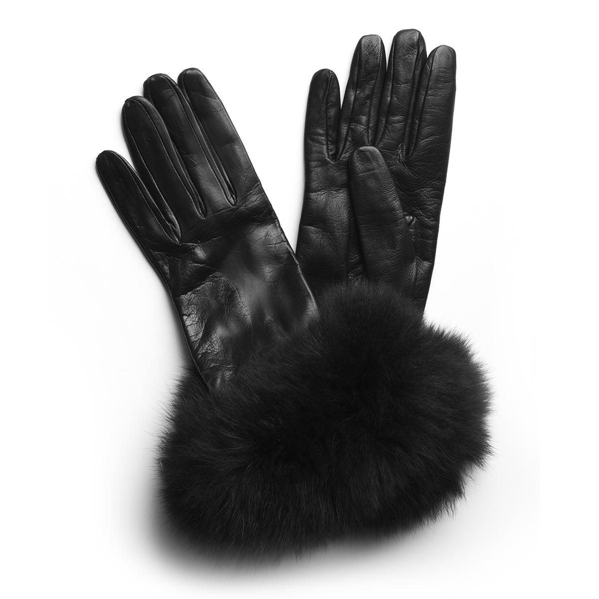 Gants en cuir d’agneau doublé soie avec rebord fourrure renard – GSTAAD