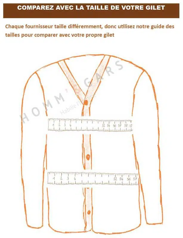 Guide des tailles du haut de ce gilet, mesures prises à plat en centimètres