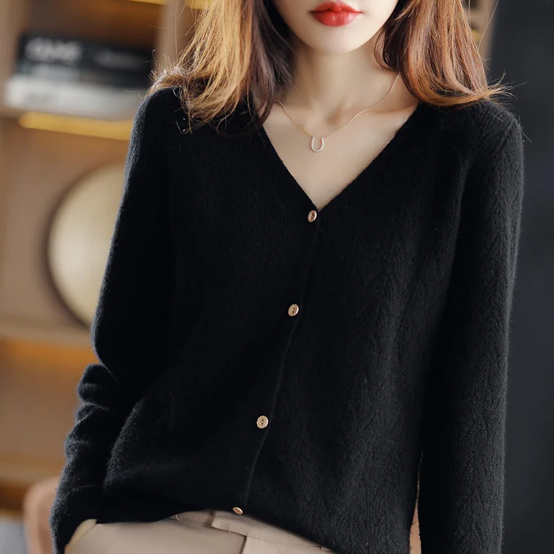 Gilet chaud tricoté en cachemire col en V