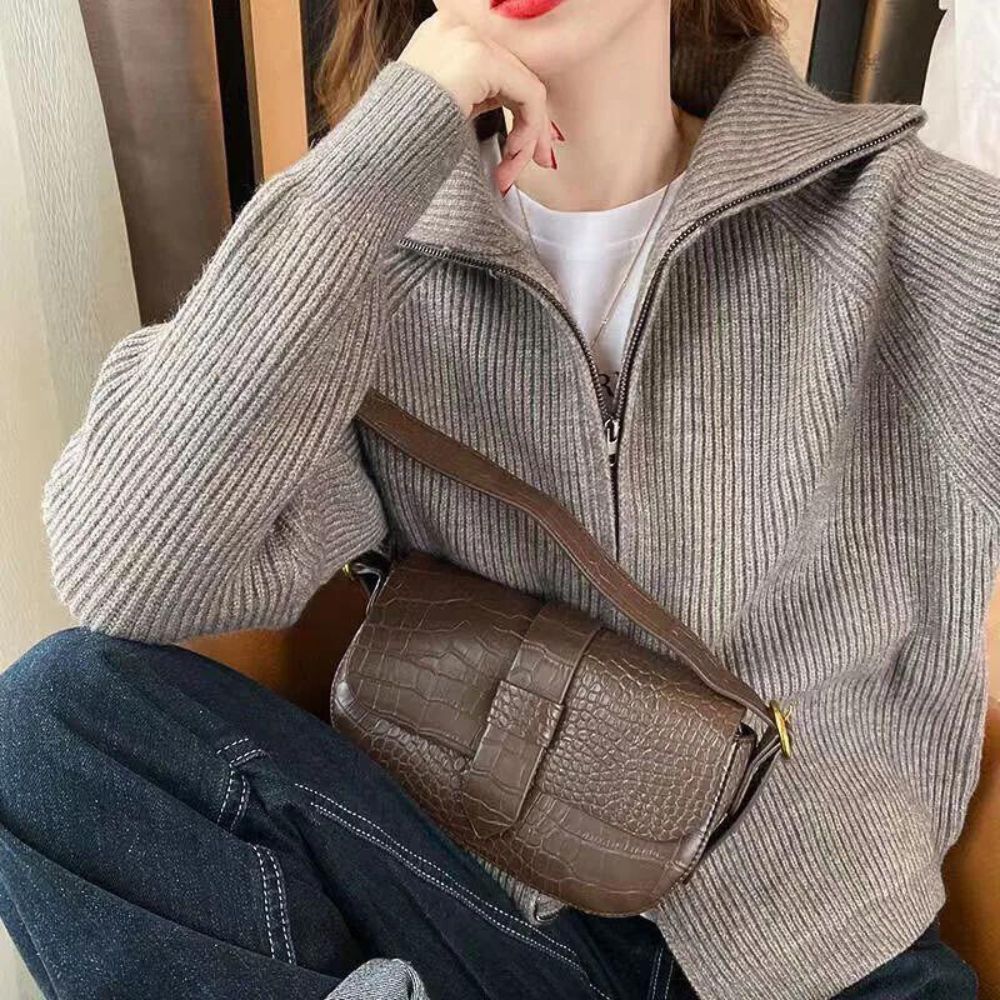 Gilet chaud zippé aux deux extrémités gris ou blanc pour femme