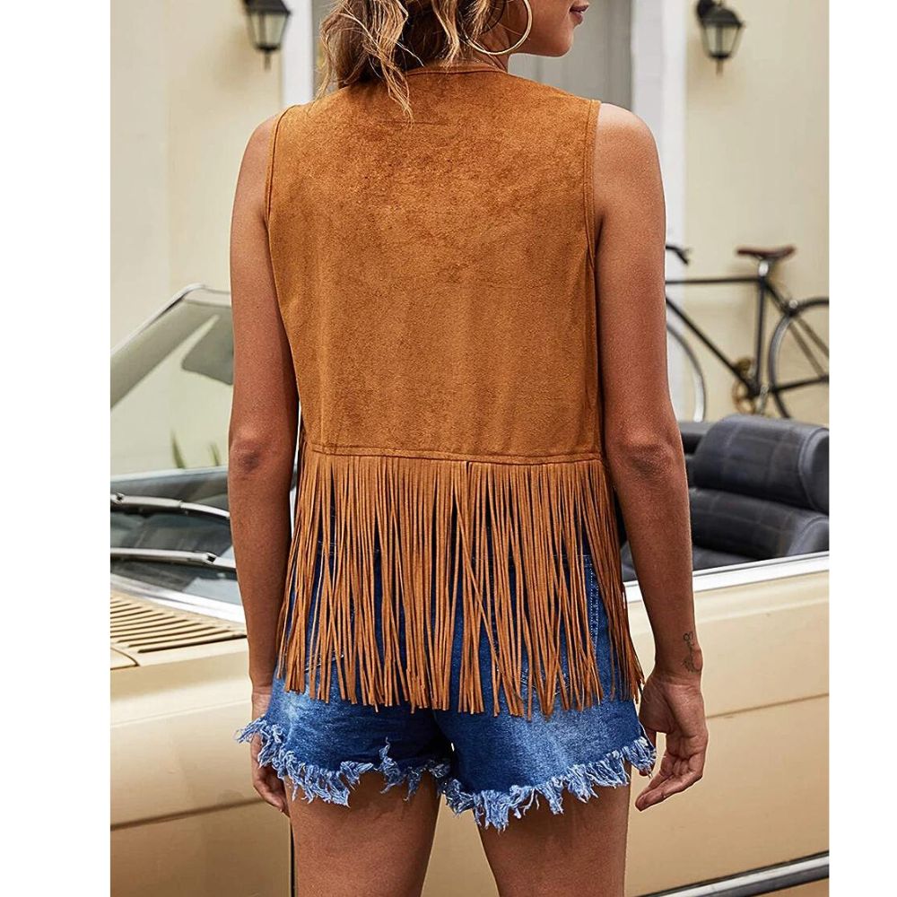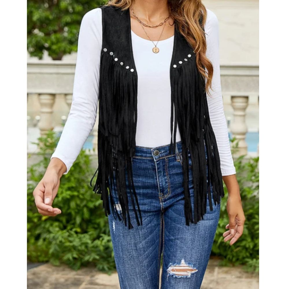 Notre gilet court sans manches à franges dans le style western pour femme, amène élégance et modernité. Les franges apportent une touche de mouvement et d’originalité, tandis que la coupe courte ajoute une allure féminine et dynamique. Parfait pour ajouter une touche unique à n’importe quelle tenue, ce gilet est un incontournable.