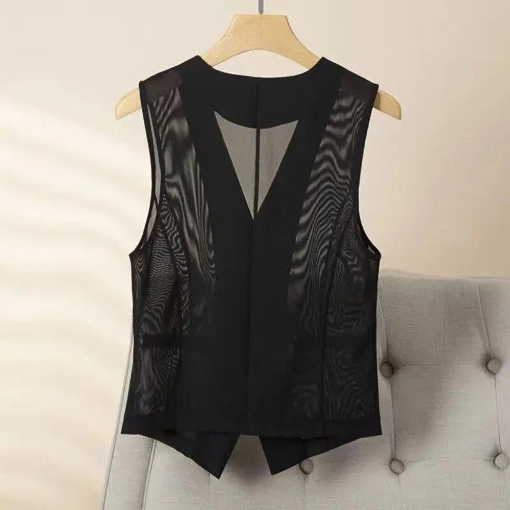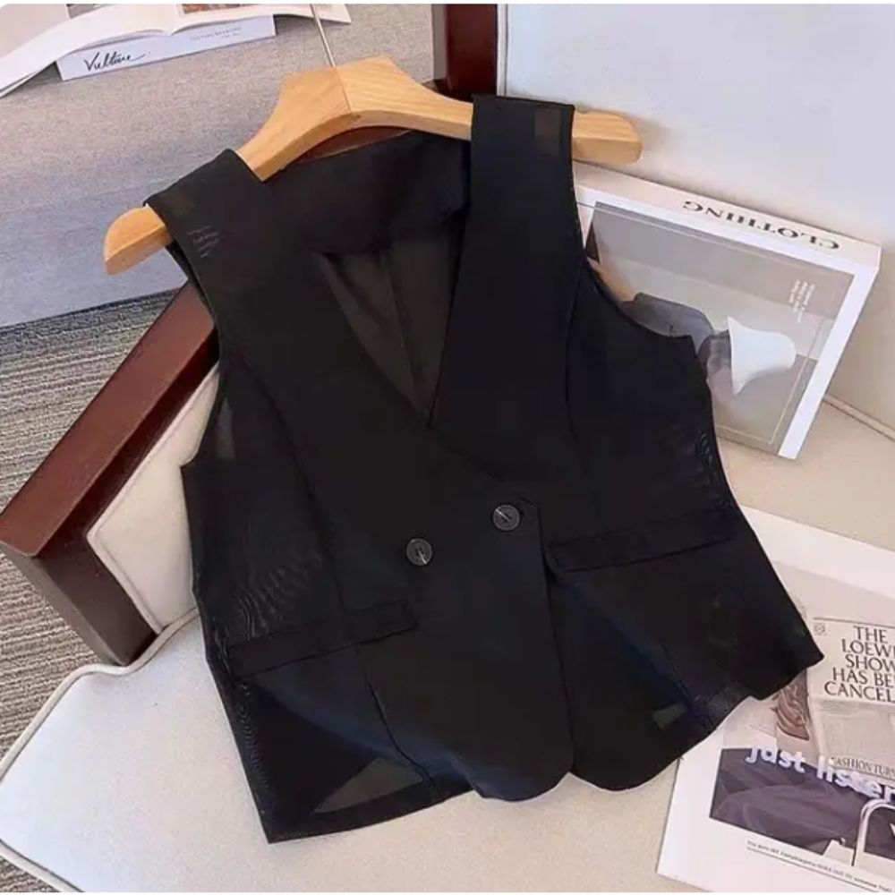 Notre gilet court sans manches noir transparent pour femme, est l’incarnation même de l’élégance audacieuse. Sa transparence subtile ajoute une touche de mystère et de sensualité à toute tenue, tandis que sa coupe courte et ajustée met en valeur la silhouette féminine. Parfait pour les occasions spéciales ou pour ajouter une touche sophistiquée à un look décontracté.