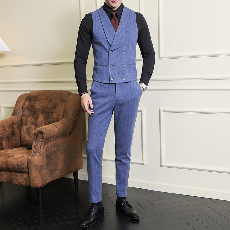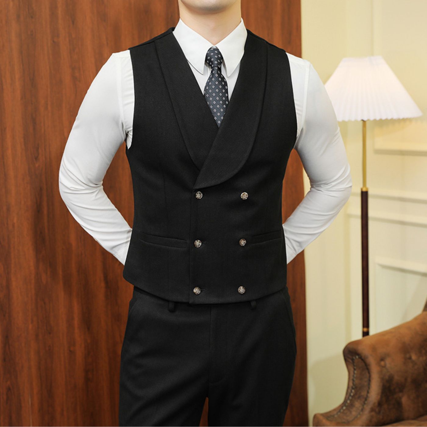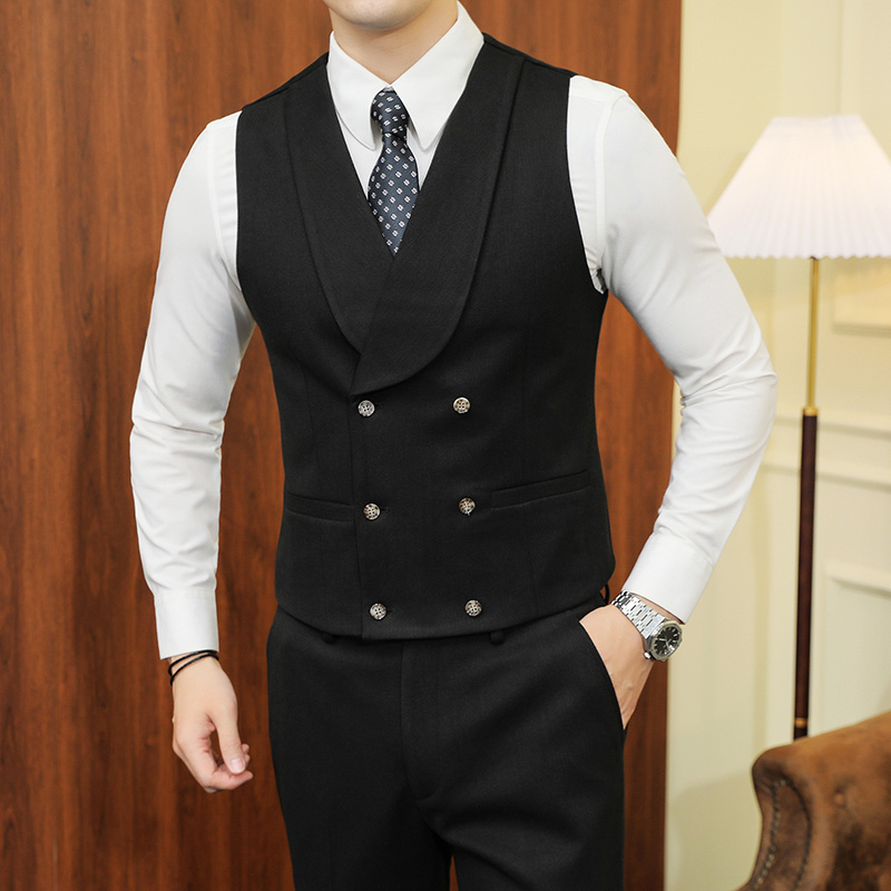 Rien ne rivalise avec l’élégance de notre gilet de costume à col rabattu, doté d’un double boutonnage chic pour une touche subtile et classe. Il s’agit là de la pièce indispensable pour un événement formel, ce vêtement parfaitement ajusté est le choix idéal pour les hommes soucieux de leur style.