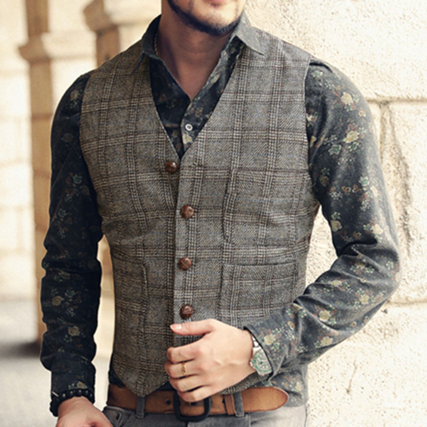 Découvrez notre gilet de costume cintré et col en V pour homme, un choix incontournable pour un style chic et intemporel. Avec son design soigné en tweed, il apporte une touche d’élégance et tendance à toute tenue formelle. Son col en V habille parfaitement toute chemise se trouvant en dessous.