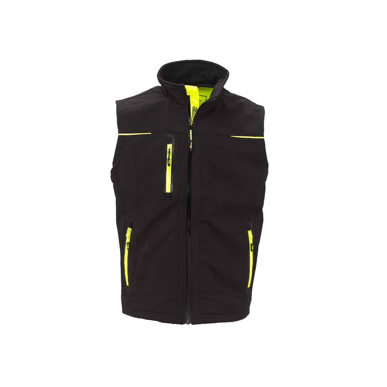Le gilet de travail sans manches Softshell avec membrane U-Tex qui rend le tissu imperméable, respirant et coupe-vent. Il est très confortable et résistant avec une doublure intérieure en micro-polaire souple et une fermeture centrale à glissière hydrofuge. Équipé de deux poches frontales fermées avec zip fluo et cordon anti-dérapant réglable à l’intérieur.