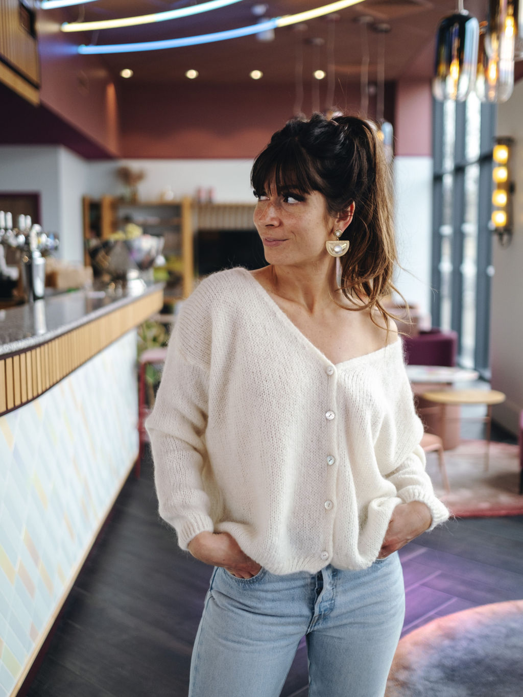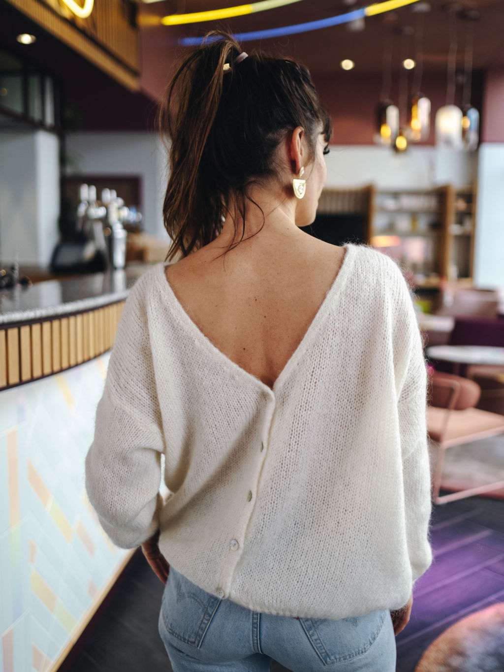 Il se porte ouvert ou fermé avec les boutons nacrés dans le dos.
