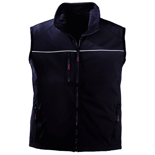 Ce gilet froid de travail est composé de softshell souple et robuste, un zip en plastique avec curseur métal et un serrage bas par élastique avec bloque-cordons sur les côtés intérieurs.