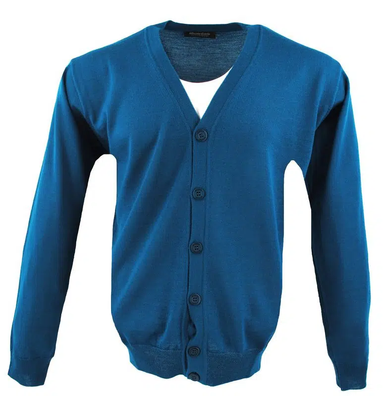 gilet homme boutonné MONTE CARLO laine fine bleu pétrole 4028mc