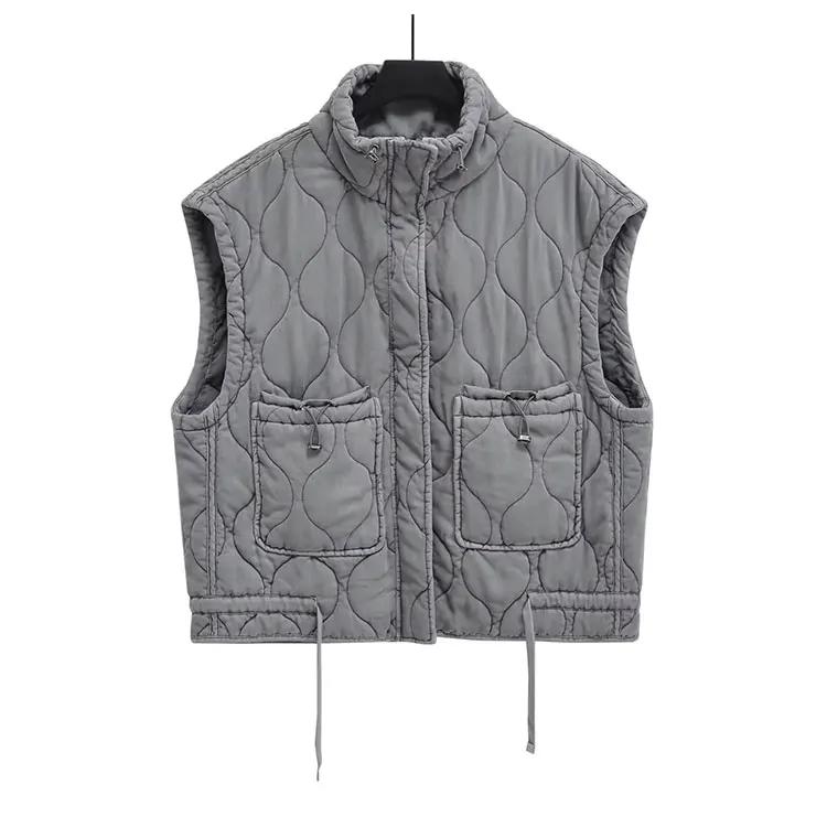 Gilet matelassé sans manches en coton à poches pour femme