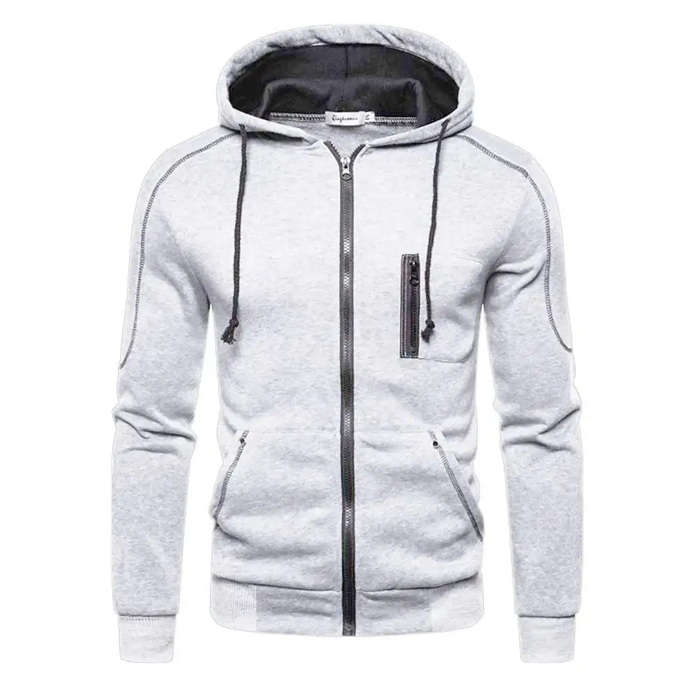 Ce gilet sweat homme à capuche bicolore style sportif a des finitions soignées, des poches dont une zippée, une grande capuche ajustable et un design ajusté. Son tissu extensible vous permettra une grande liberté de mouvements et son look sportif et tendance vous permettront de le porter aussi en dehors de vos activités sportives.