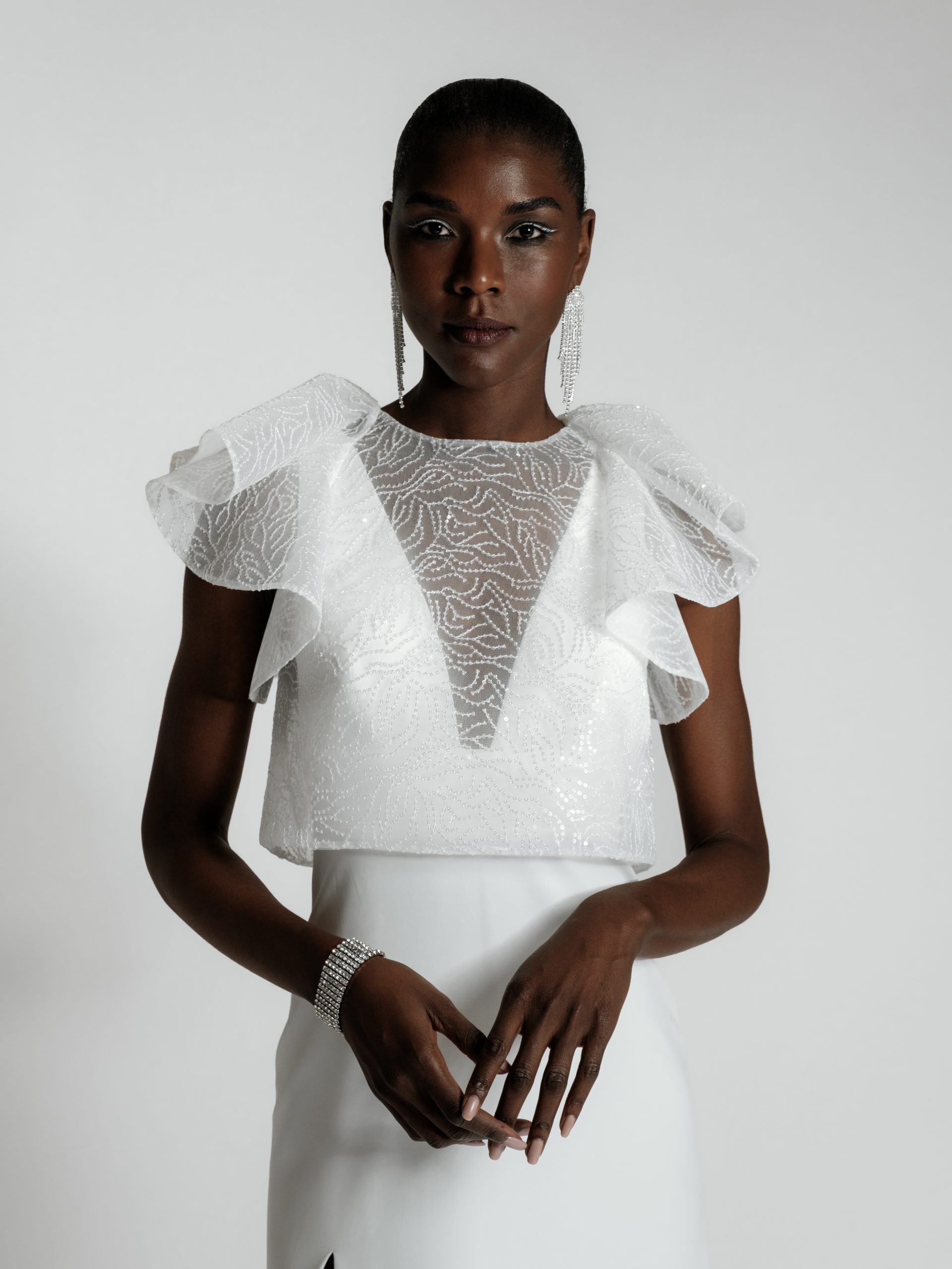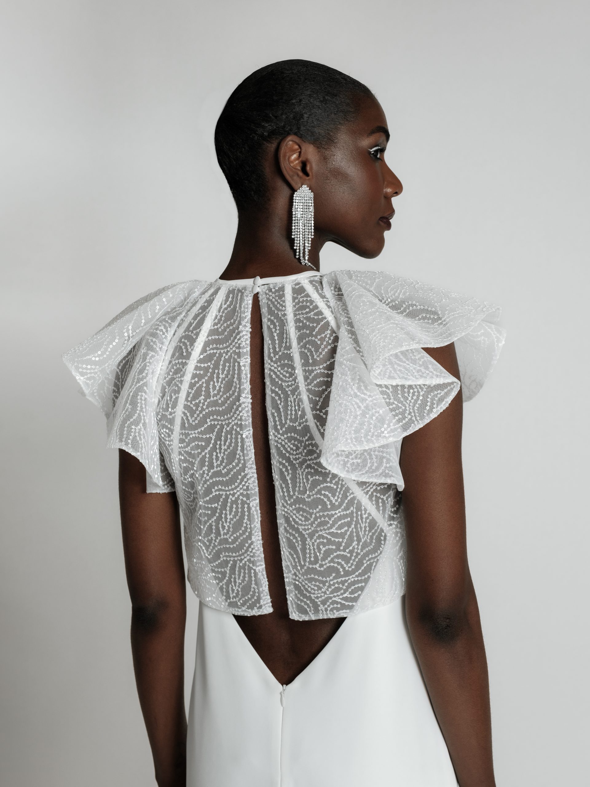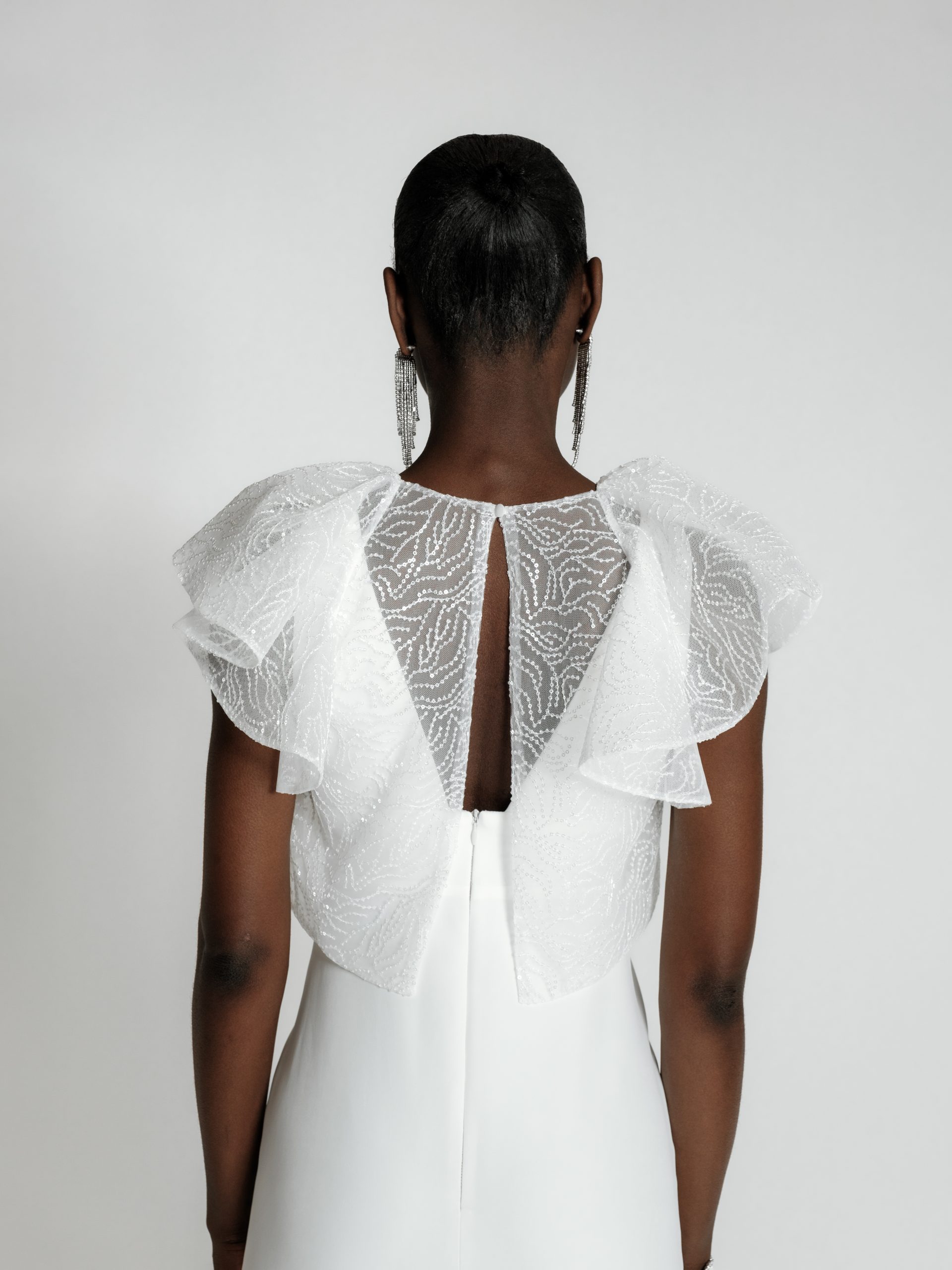GIN – Top mariage à manches volantes broderie sequins