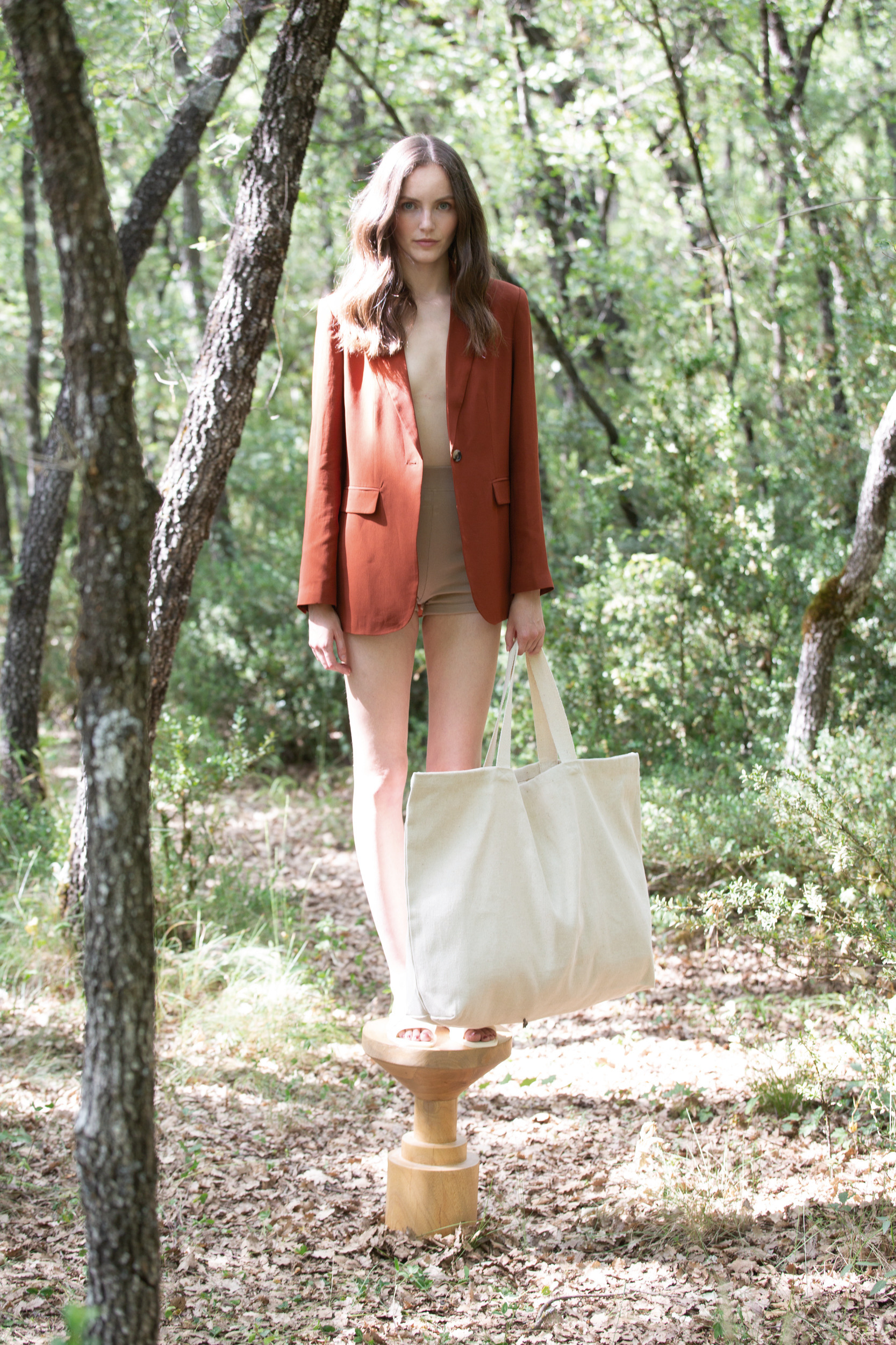 Grand sac fourre-tout en toile et coton avec soufflet et poignées contrastées de 55 cm. Le fil juco apporte au sac un tissage à aspect rustique.