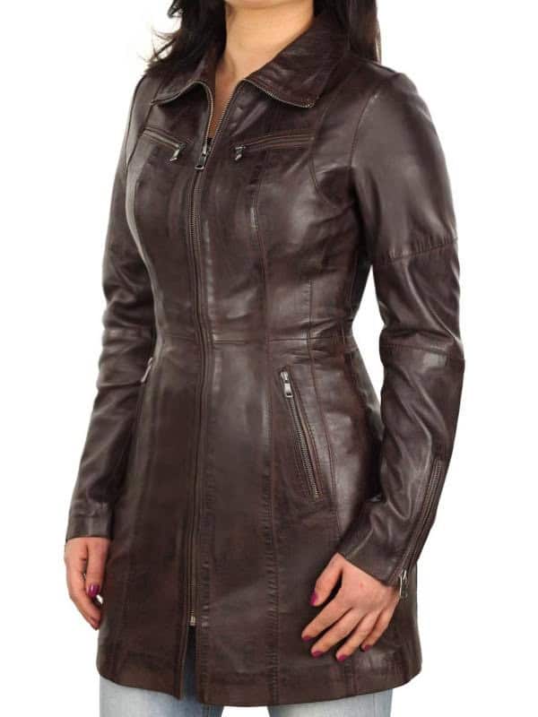 Bent u op zoek naar een wat langere leren dames jas? Dan raden we zeker dit model aan en u zult er nooit spijt van krijgen! De lange leren dames jas van Versano is gemaakt van de beste materialen en is zacht en soepel omdat hij 100% lamsleer is. Als u deze jas bij ons bestelt, dan haalt u een jas in huis die levenslang mooi zal blijven. De mooie kleur donker bruin is makkelijk te combineren en past vrijwel bij al je outfits. Zijn Italiaanse ontwerp zorg dat de jas strak getailleerd aansluit en nog steeds comfortabel draagt. Dit model is niet te druk waardoor het een top klassieker is. Dit model is gemakkelijk te bestellen op onze website. Als u hem vandaag nog besteld word hij binnen 2 werkdagen bij u geleverd.