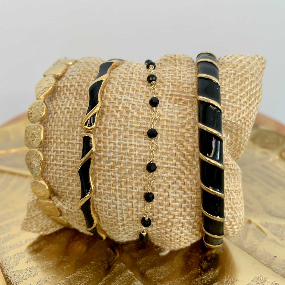 Le bracelet jonc vague noir est super tendance et chic pour habiller votre poignet. On adore ses détails dorées tout au long du jonc noir.