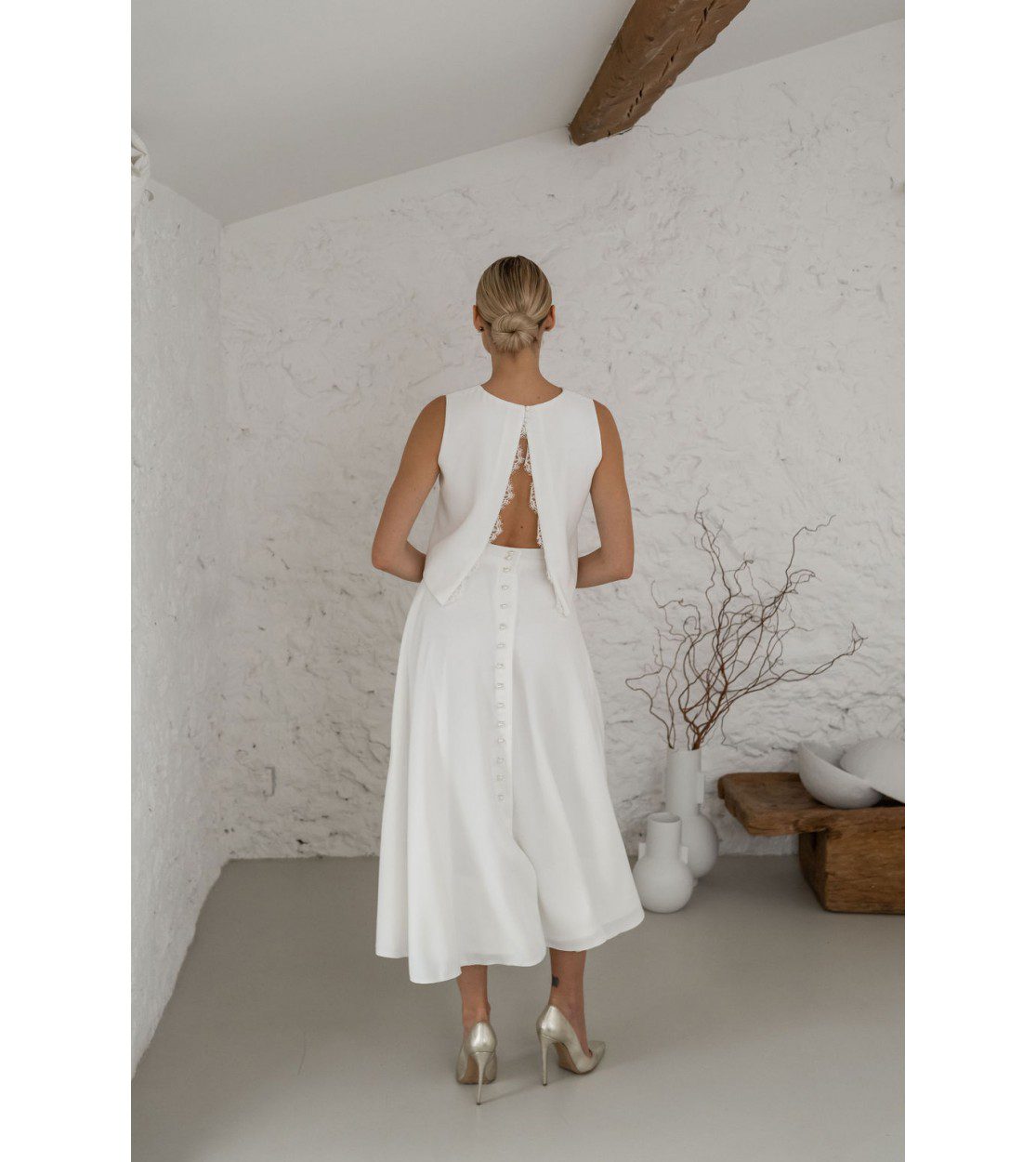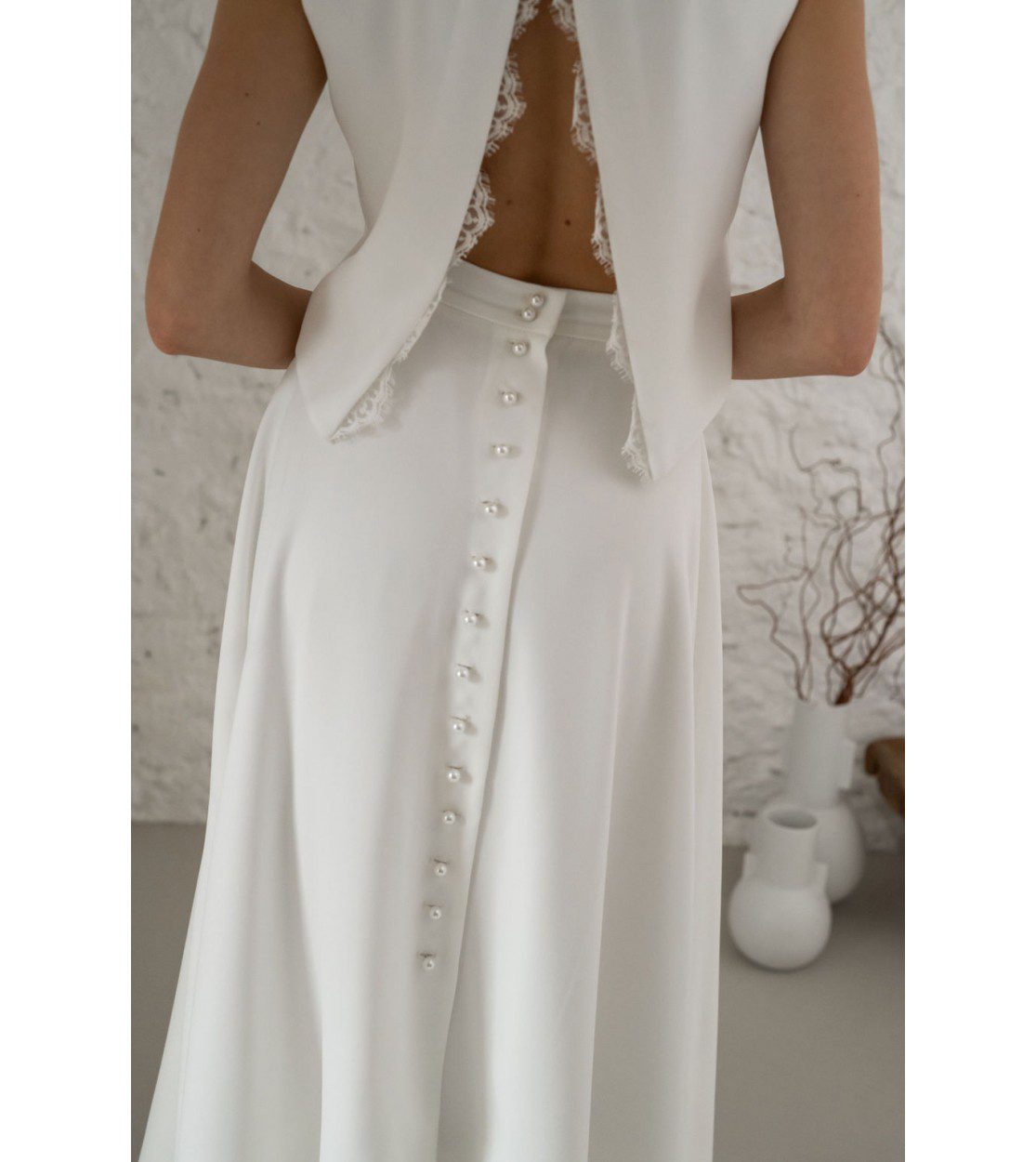 Jupe style années 50, longueur midi entièrement prise en biais, elle est d’une ampleur magnifique. Le dos est agrémenté de boutons en perles qui renforcent le charme du modèle. Le ceinture met en valeur la taille. Matières principales : crêpe envers satin 100% polyester, infroissable