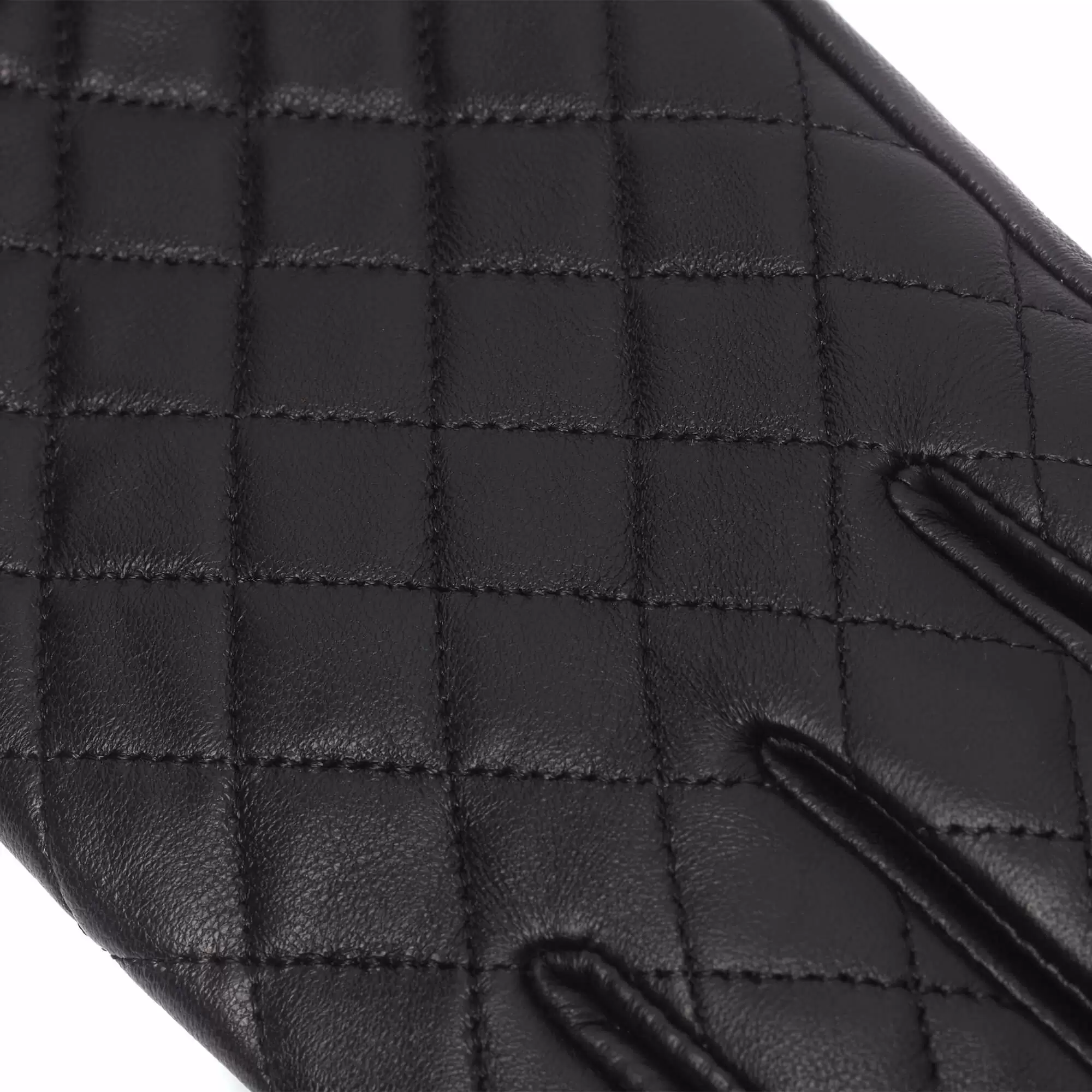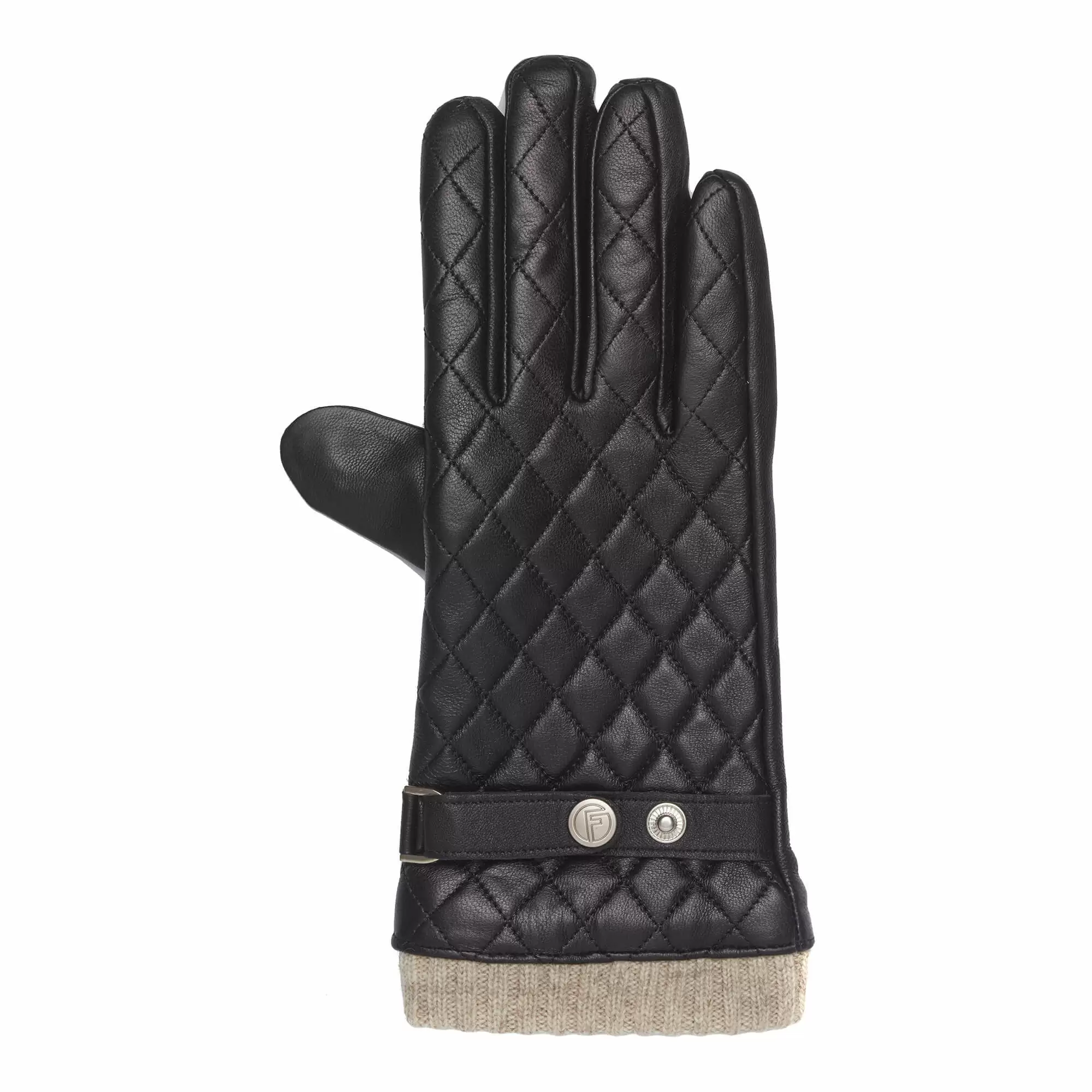 Kate (Schapenleer) – Geruite Zwarte Dames Handschoenen met Winddichte Riem, Luxe Wollen Voering & Touchscreen Functie