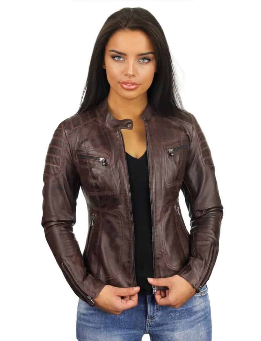 Leren biker jas dames Miami bruin Versano