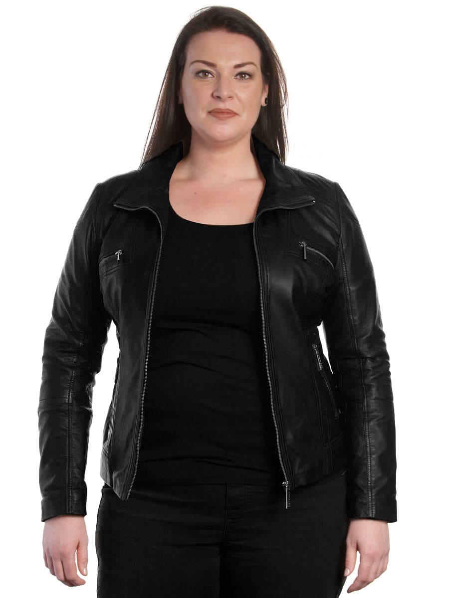 Leren dames jas grote maat zwart Pino Versano