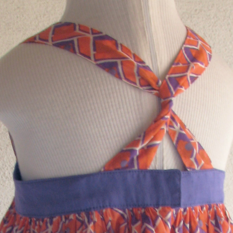 Robe taille empire ajustée. Bretelles croisées dans le dos. Empiècement devant avec plis. Longueur mi-cuisses.