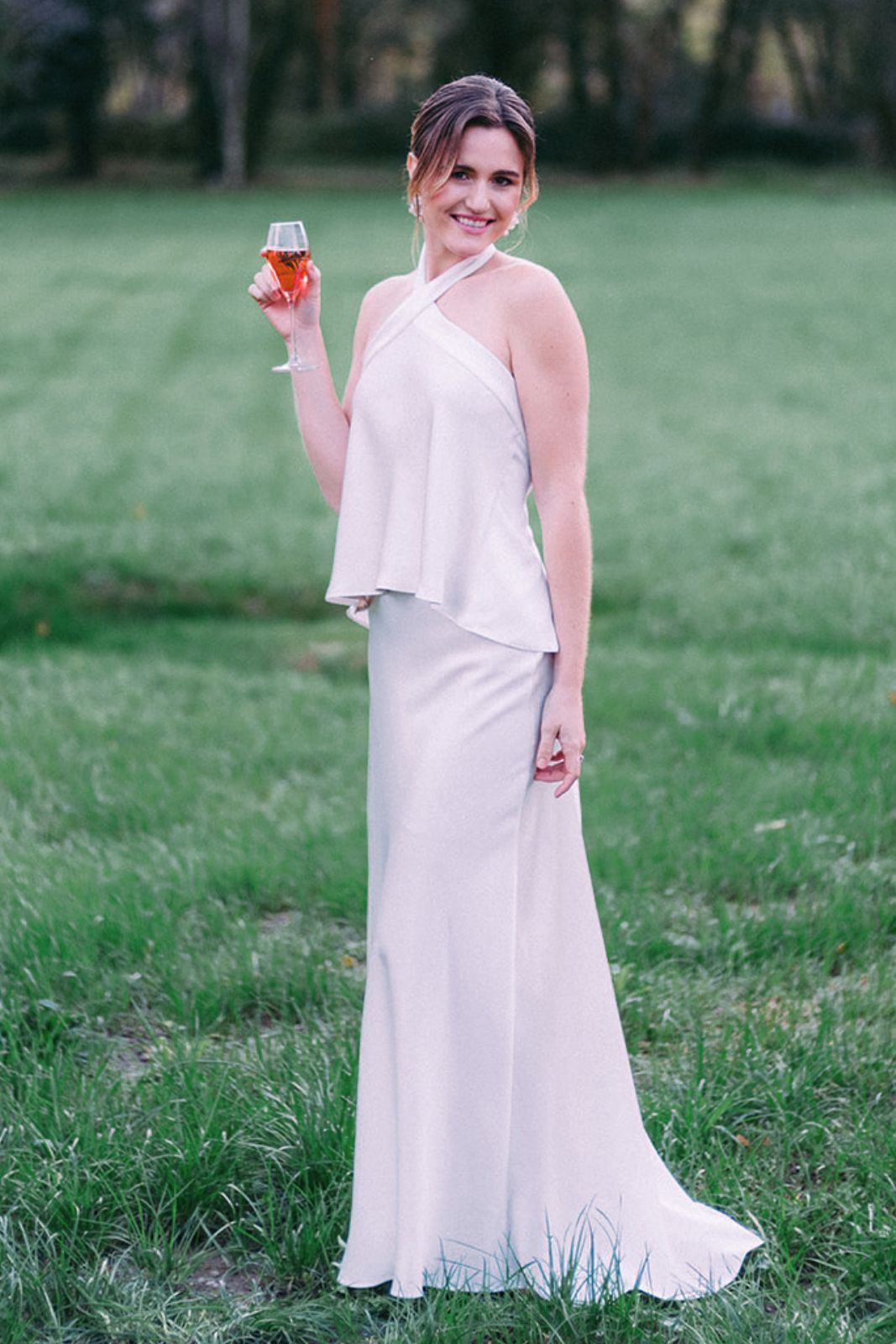 Explorez la modernité avec notre tout nouveau haut de mariée en crêpe satin, doublé de soie pour une élégance inégalée.