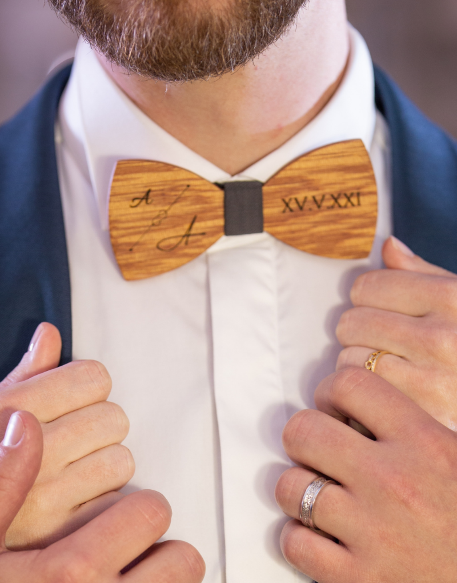 Apportez une touche d’originalité et de naturel à votre tenue avec notre nœud papillon en bois personnalisable. Parfait pour les mariés, témoins, et invités désirant se démarquer, ce nœud papillon peut être gravé avec les initiales, prénoms, dates, logos, symboles ou dessins personnalisés. Idéal pour les mariages, anniversaires, et autres occasions spéciales, cet accessoire artisanal est fabriqué avec soin pour une qualité exceptionnelle.