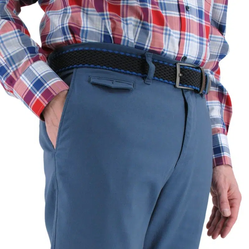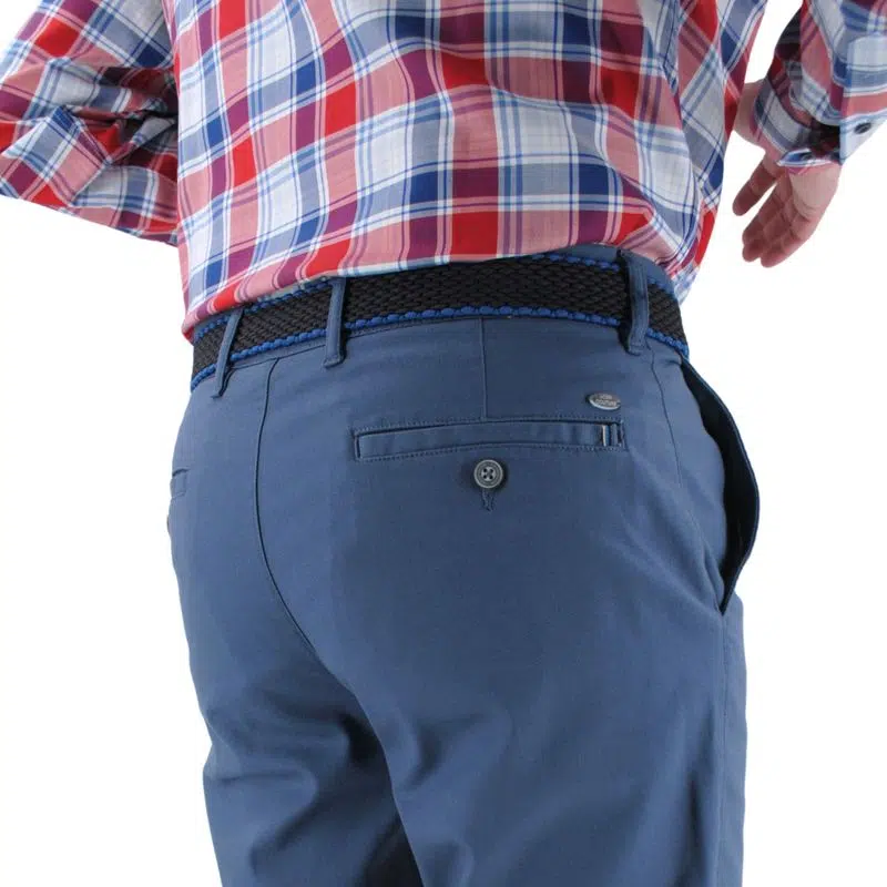 Ce pantalon est livré avec sa ceinture extensible marine et bleu qui lui procure un style chic et décontracté. Vous apprécierez le coton extensible pour accompagner vos mouvements. Sa poche avant lui confère aussi un style unique.