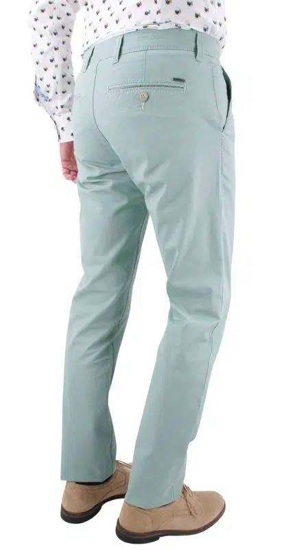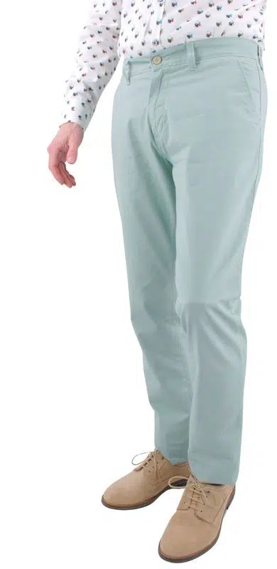 Chino homme de la marque allemande PIONEER. c’est une couleur entre le bleu turquoise et le vert pâle.