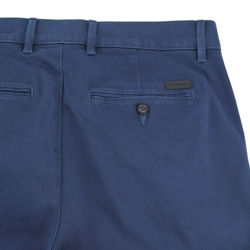 Pierre CARDIN a réalisé un chino d’une très belle couleur bleu sur un coton micro-imprimé de vaguelettes très très discrètes. Cela renforce le style du pantalon à la coupe droite et large.