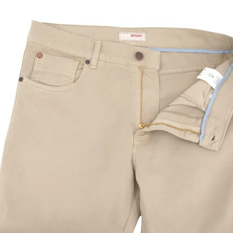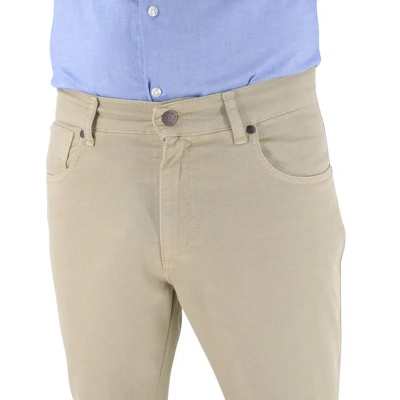 Découvrez notre pantalon en coupe 5 poches légèrement slim confectionné dans un coton de grande qualité. Le 5 poches offre une fonctionnalité pratique tout en ajoutant une touche de modernité. Sa couleur beige facilite les accords avec vos polos et t-shirts.