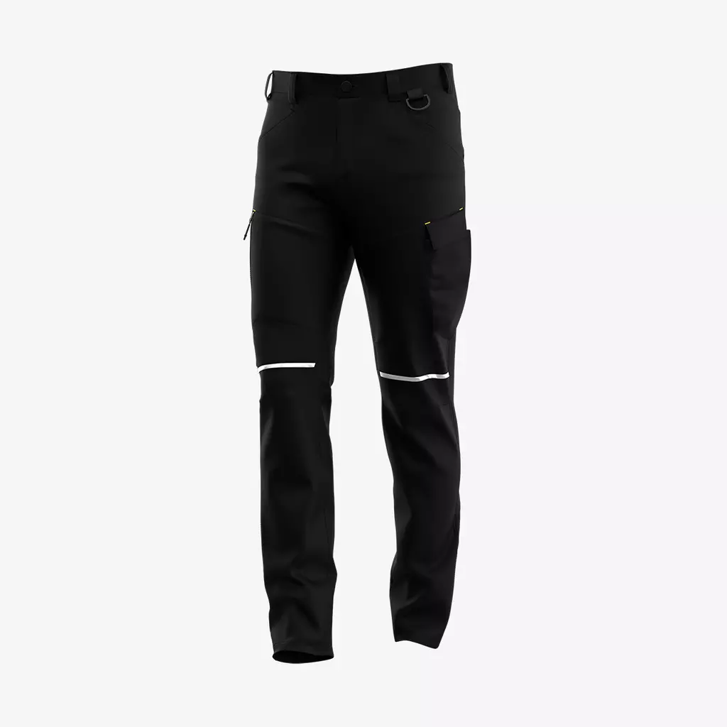 - Nombreuses poches : Le pantalon est équipé de deux poches frontales, deux poches cuisse, deux poches arrière et une poche arrière zippée, offrant un espace de rangement pratique pour les outils et les accessoires.