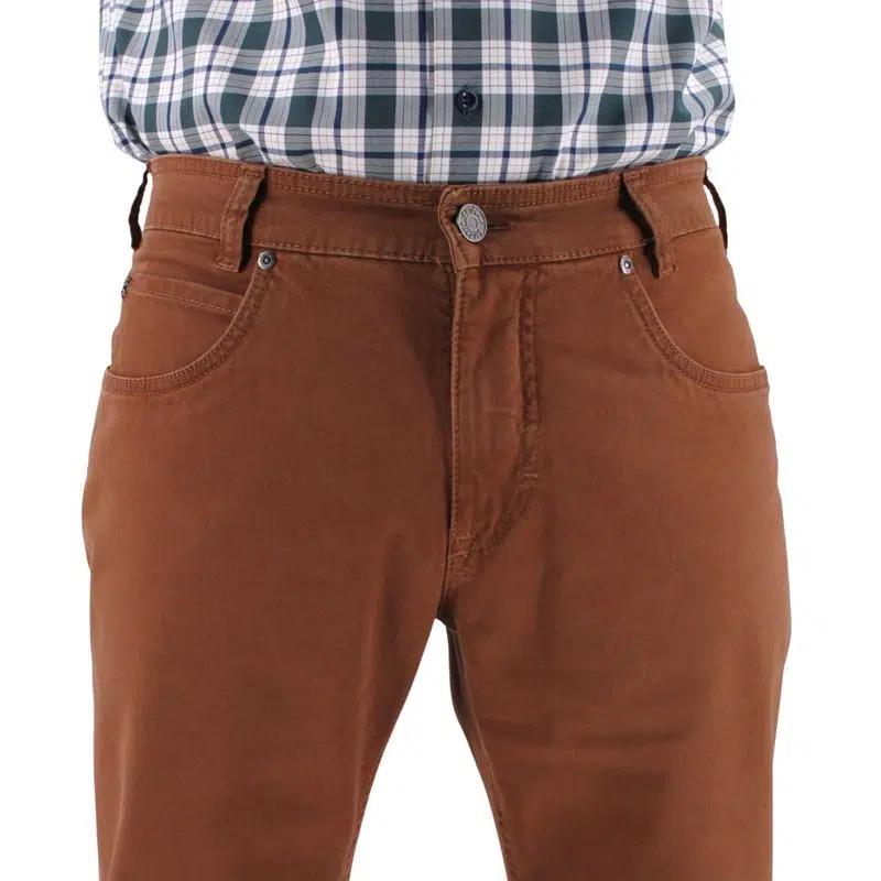 Dans la marque GARDEUR en forme Bill (poches cavalières) nous vous proposons cette autre couleur entre l’orange et le rouille. Un pantalon qui pourra s’accompagner d’une chemise beige avec un gilet bleu marine. Un pantalon dont vous apprécierez la qualité du coton.