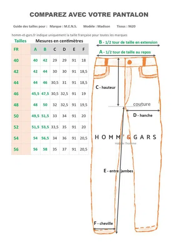 Pantalon habillé homme en coupe Madison-U (donc taille abaissée de 2 cm sur le devant par rapport au Madison).