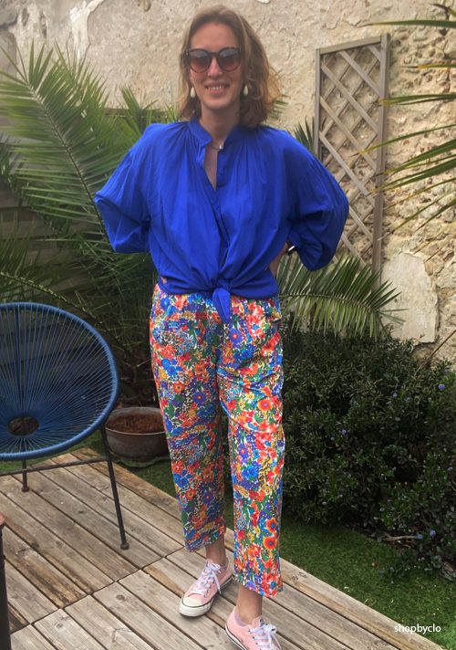 - Je porte le pantalon magic avec la chemise en voile de coton bleu électrique