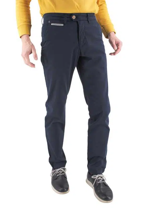 Chino passepoilé en blanc sur la poche ticket devant et sur les 2 poches arrières boutonnées